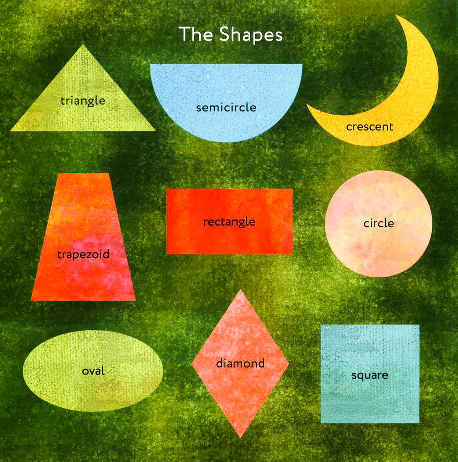 With vibrant illustrations that highlight shapes in all their forms, this informative book reinforces the identification of circles, squares, crescents, diamonds, triangles, rectangles, trapezoids, and ovals while encouraging kids to pair shapes together to make new forms.