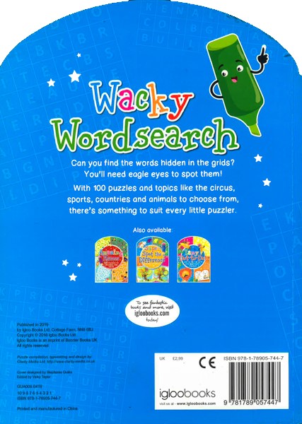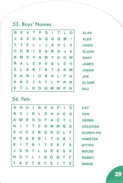 Can you find the words hidden in the grids? You'll need eagle eyes to spot them! With 100 puzzles and topics like the circus, sports, countries and animals to choose from, there's something to suit every little puzzler.