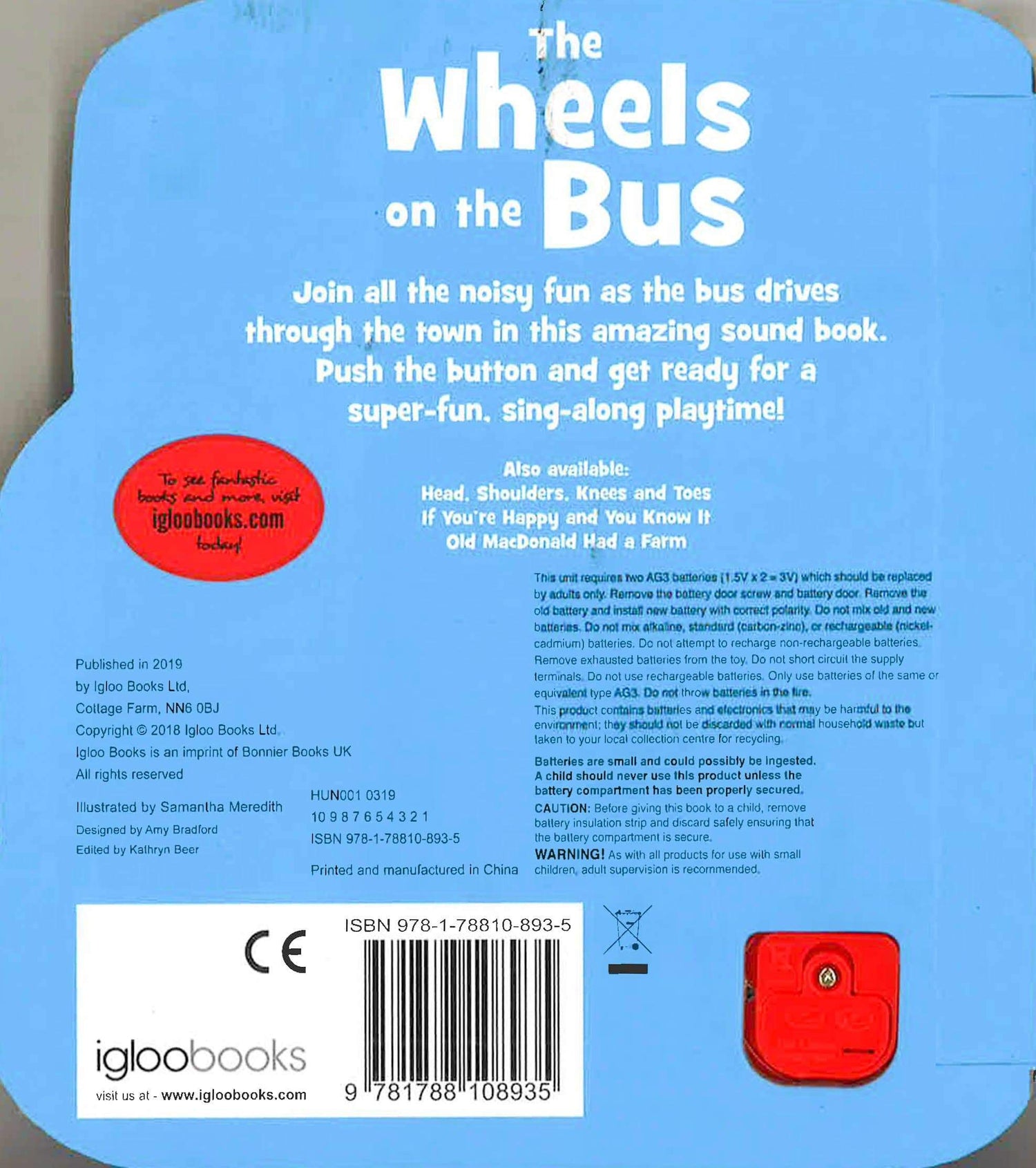 Join all the noisy fun as the bus drives through the town in this amazing sound book. Push the button and get ready for a super-fun, sing-along playtime!