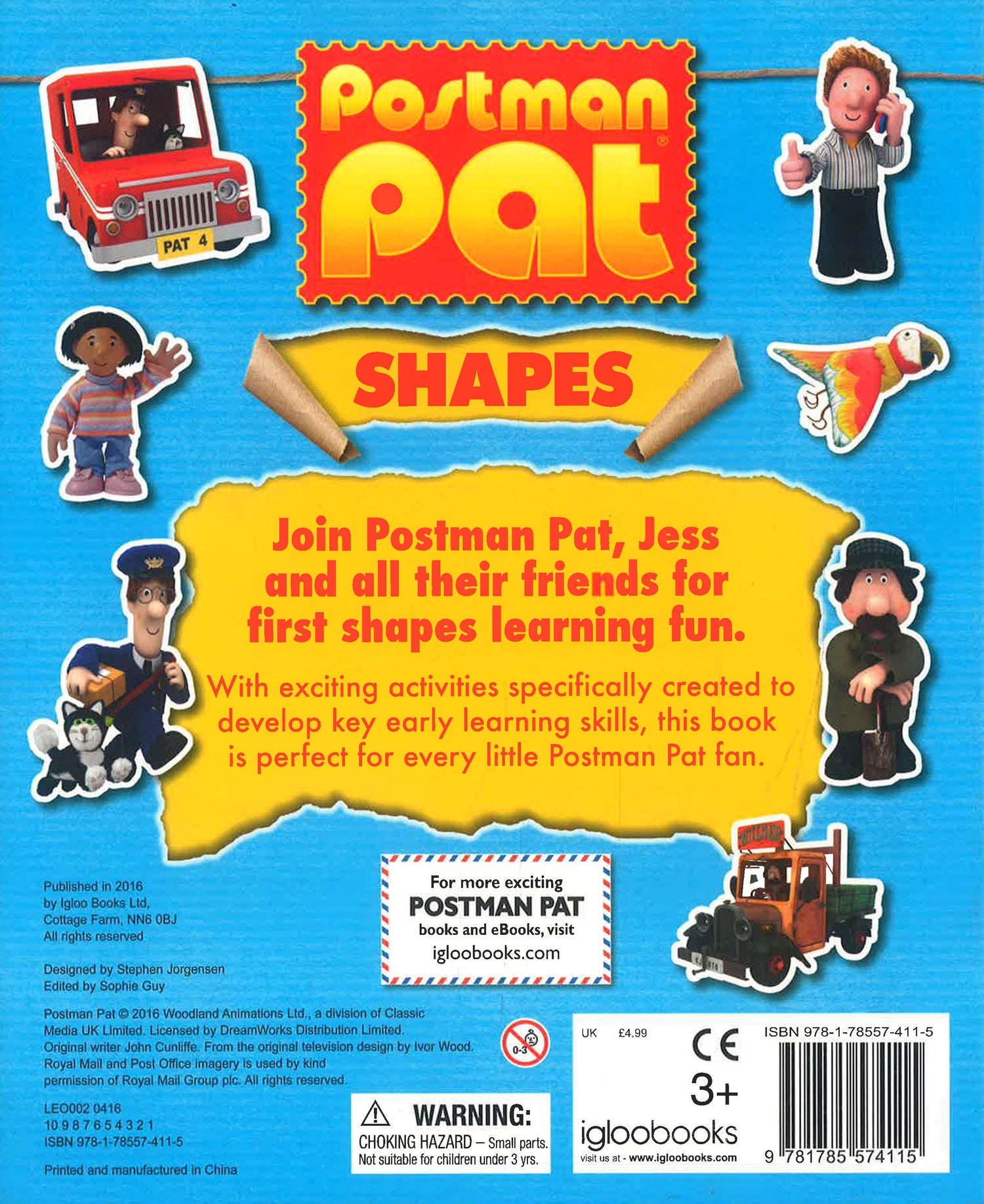 Join Postman Pat, Jess and all their friends for first shapes learning fun. With exciting activities specifically created to develop key early learning skills, this book is perfect for every little Postman Pat fan.