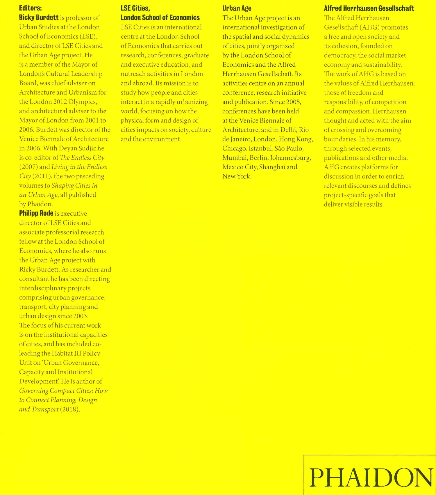 Shaping Cities in an Urban Age is the third addition to Phaidon's hugely successful Urban Age series, published in collaboration with the London School of Economics (LSE) and the Alfred Herrhausen Gesellschaft (AHG).