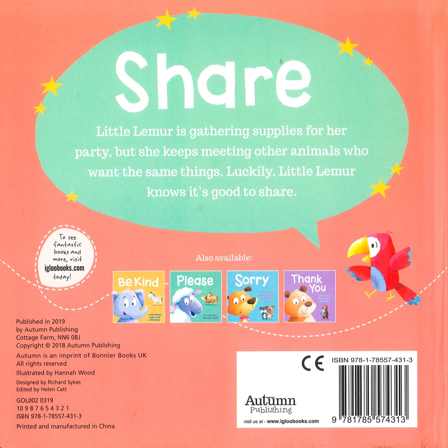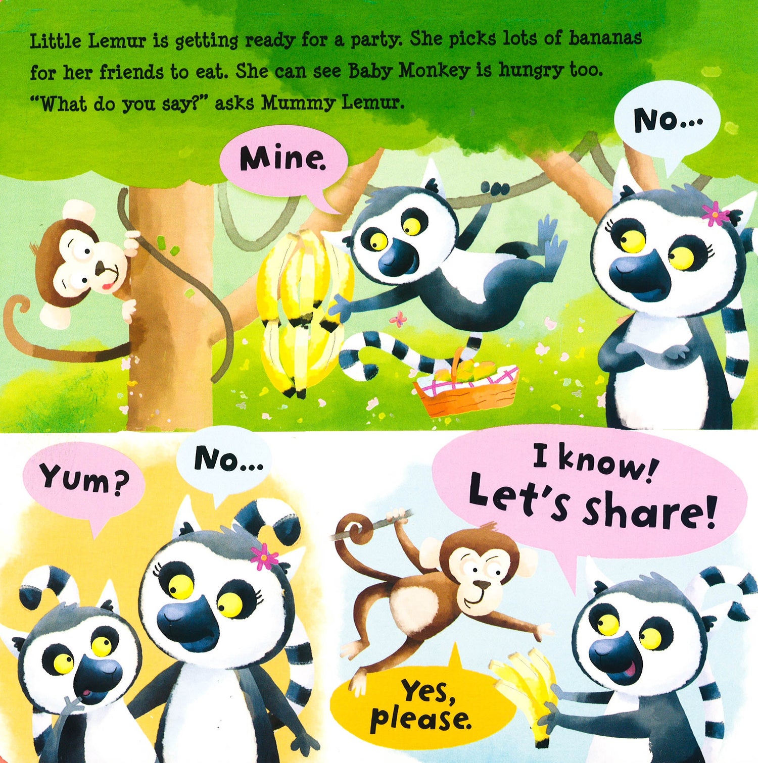 Share tells the story of a little lemur who discovers how sharing is a great way to make friends.