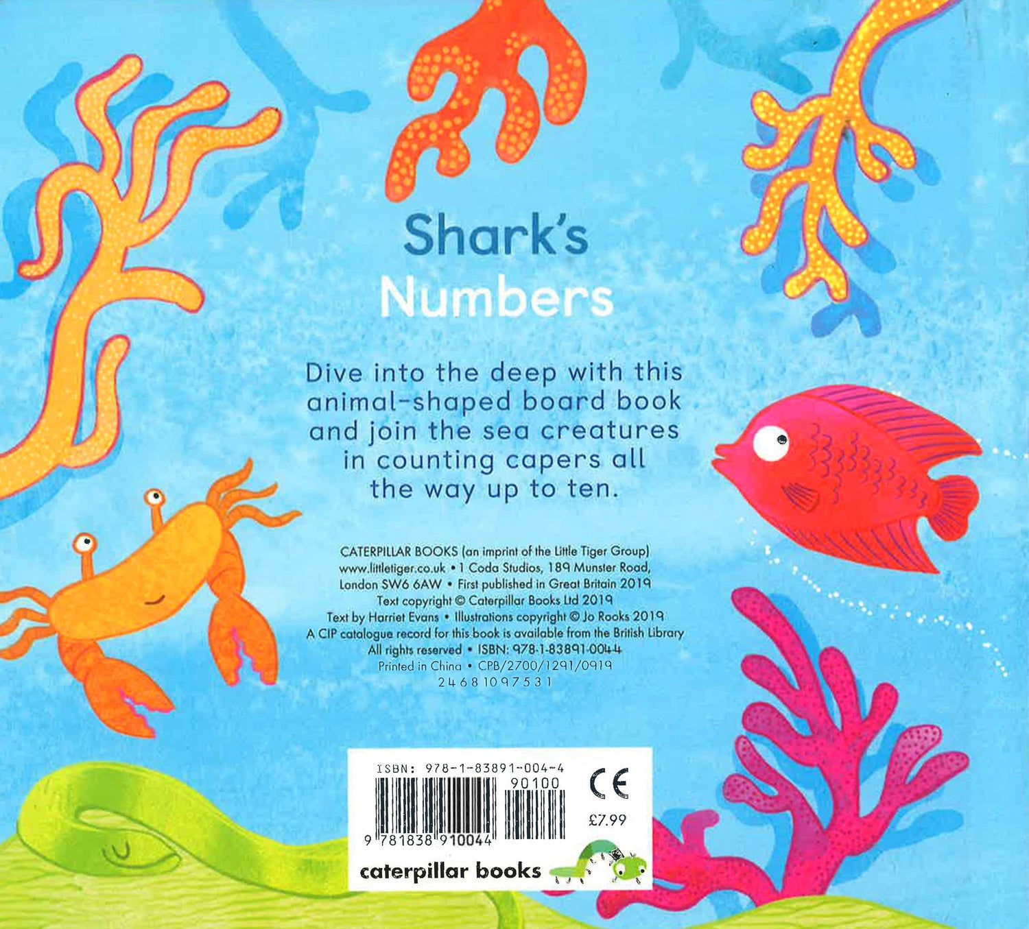 Can you crunch numbers with Shark? Dive into the deep with this animal-shaped board book and join the sea creatures in counting capers all the way up to ten.
