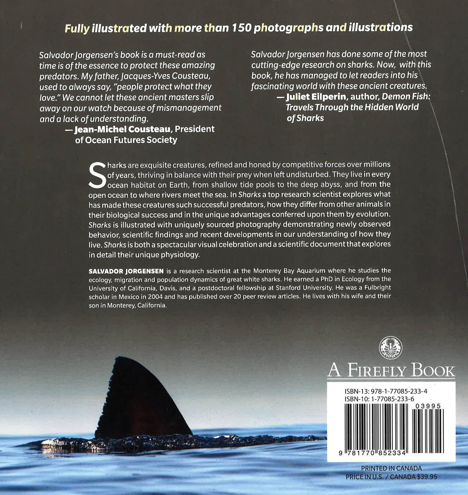 New insights into the world's most-feared predator. Sharks are exquisite creatures refined and honed by competitive forces that have lived in balance with ocean prey for millions of years. They live in every ocean habitat on Earth, from shallow tide pools to the deep abyss, and from the open ocean to where rivers meet the sea. In Sharks a top research scientist explores what has made sharks such successful predators, how they differ from other animals in their biological success and what unique advantages evolution has conferred. Sharks is illustrated with uniquely sourced photography demonstrating newly observed behavior, scientific findings and recent developments in our understanding of how they live. Sharks is both a spectacular visual celebration, and a scientific document that explores in detail their unique physiology. A powerful swimming stroke is delivered from sharks' muscles directly to their tough skin shell forcing their body to "inflate" like a car tire with each flex, then quickly become fluid to glide as the muscles relax. By diving through the various water layers, a shark may locate and follow chemical scent trails that could lead to food concentrations. Thus a shark moving from one temperature layer to the next can expose its sensory equipment to new chemical cues and potentially new food sources. Some deep-sea sharks also lure prey with their light-producing organs. Salvador Jorgensen has combined the latest discoveries of new species, newly-documented shark behavior, and the best photographs, to give a "state-of-knowledge" picture of sharks. Unique pictures of shark births, recently discovered creatures from the Ocean Census research, and details of sharks' skin, eyes, teeth and heads (including a comparison of nine different hammerhead varieties) make this a book every shark enthusiast will want. It will also debunk many myths about shark behavior, and give libraries a true, 21st-century documentation of a very popular wild animal. Sharks features illustrated profiles of species living in the shallow reefs and also those living in the open ocean along with a unique "cladogram" family tree that opens into a gatefold and profiles every known species.