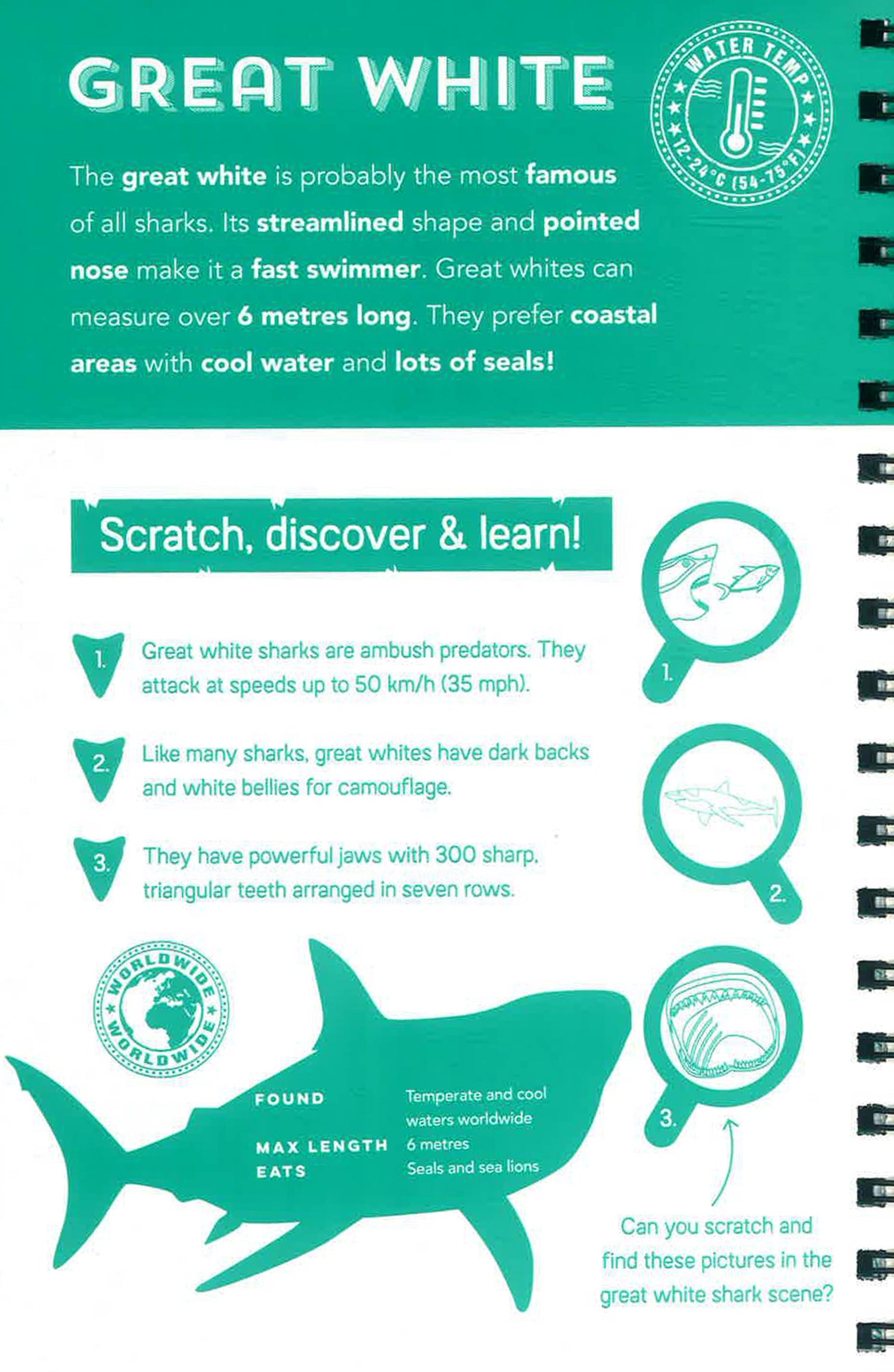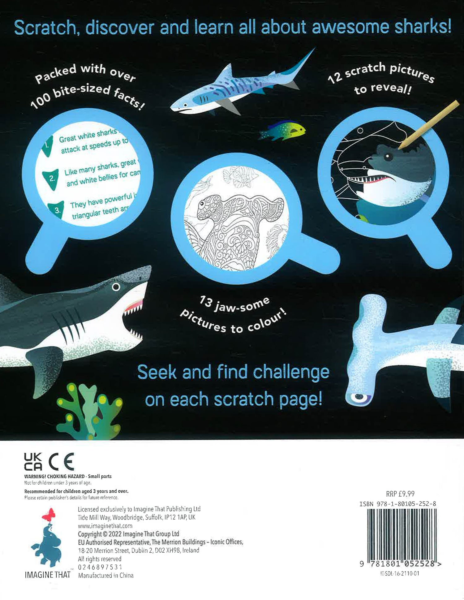 This sharks book is packed with bite-sized non-fiction facts, hidden pictures to reveal, exciting colouring, and a fun seek and find challenge to complete on each scratch page.