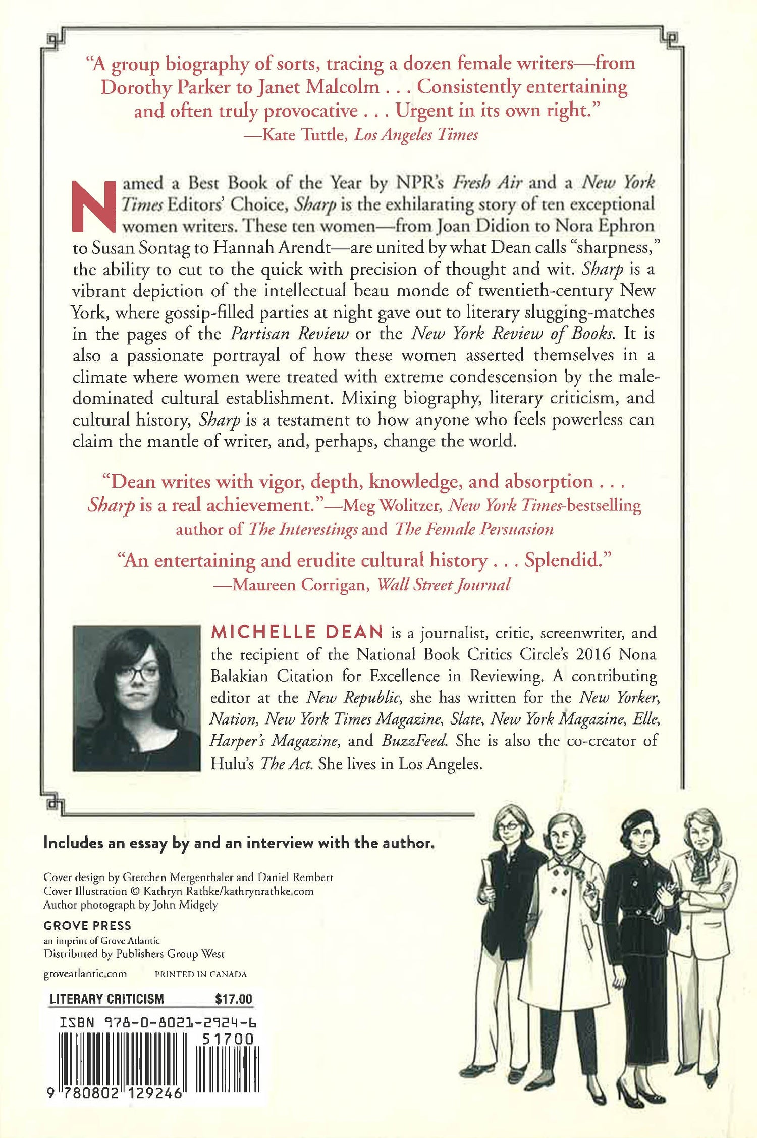 Dorothy Parker, Rebecca West, Hannah Arendt, Mary McCarthy, Susan Sontag, Pauline Kael, Joan Didion, Nora Ephron, Renata Adler, and Janet Malcolm are united by what Dean calls "sharpness," the ability to cut to the quick with precision of thought and wit. Sharp is a vibrant depiction of the intellectual beau monde of twentieth-century New York, where gossip-filled parties at night gave out to literary slugging-matches in the pages of the Partisan Review or the New York Review of Books. It is also a passionate portrayal of how these women asserted themselves through their writing in a climate where women were treated with extreme condescension by the male-dominated cultural establishment. Mixing biography, literary criticism, and cultural history, Sharp is a testament to how anyone who feels powerless can claim the mantle of writer, and, perhaps, change the world.