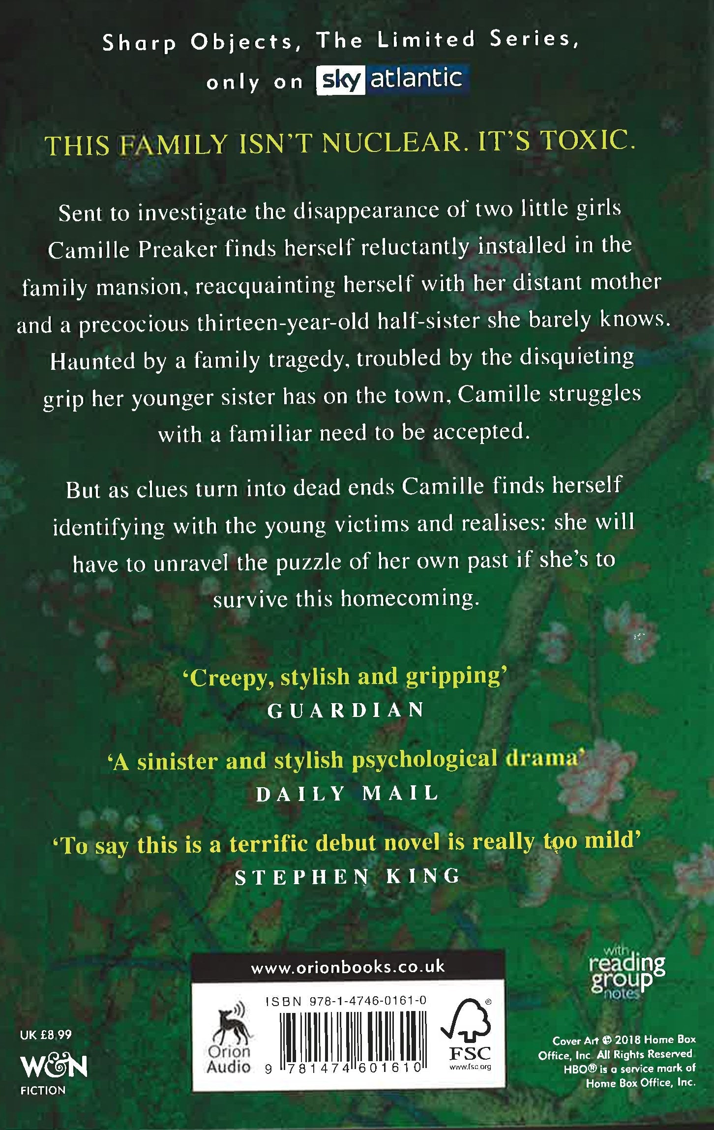 As Camille works to uncover the truth about these violent crimes, she finds herself identifying with the young victims - a bit too strongly. Clues keep leading to dead ends, forcing Camille to unravel the psychological puzzle of her own past to get at the story. Dogged by her own demons, Camille will have to confront what happened to her years before if she wants to survive this homecoming.