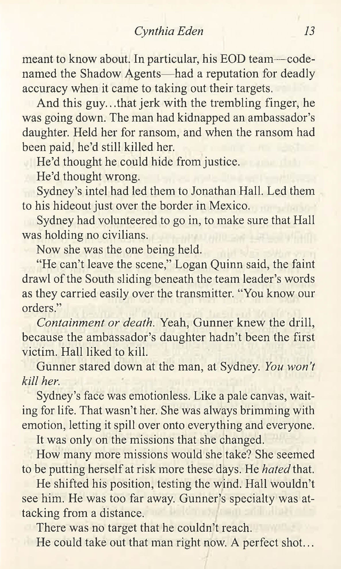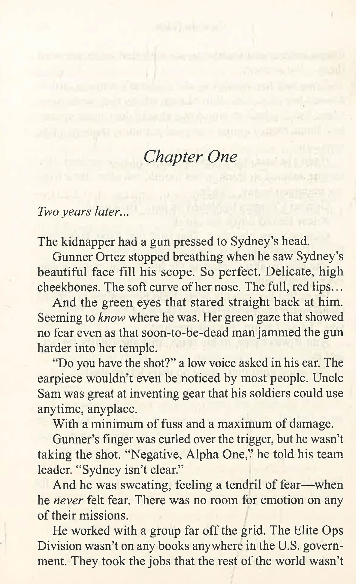 Two years ago Gunner Ortez saved Sydney Sloan's life on a mission gone wrong. And ever since then, he's been watching her back. Now a hostage-rescue mission is about to blow the Elite Ops agents' lives apart once again.