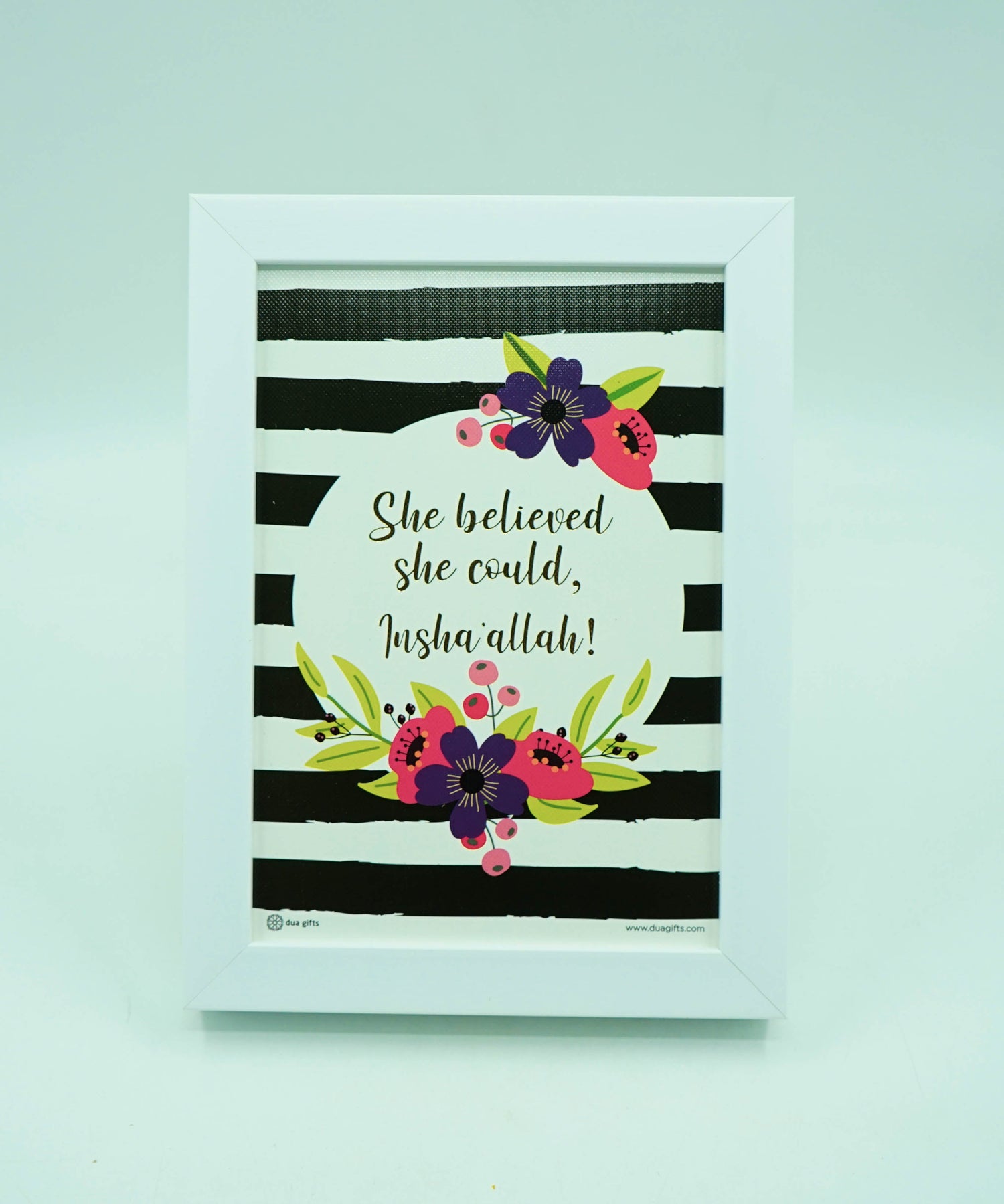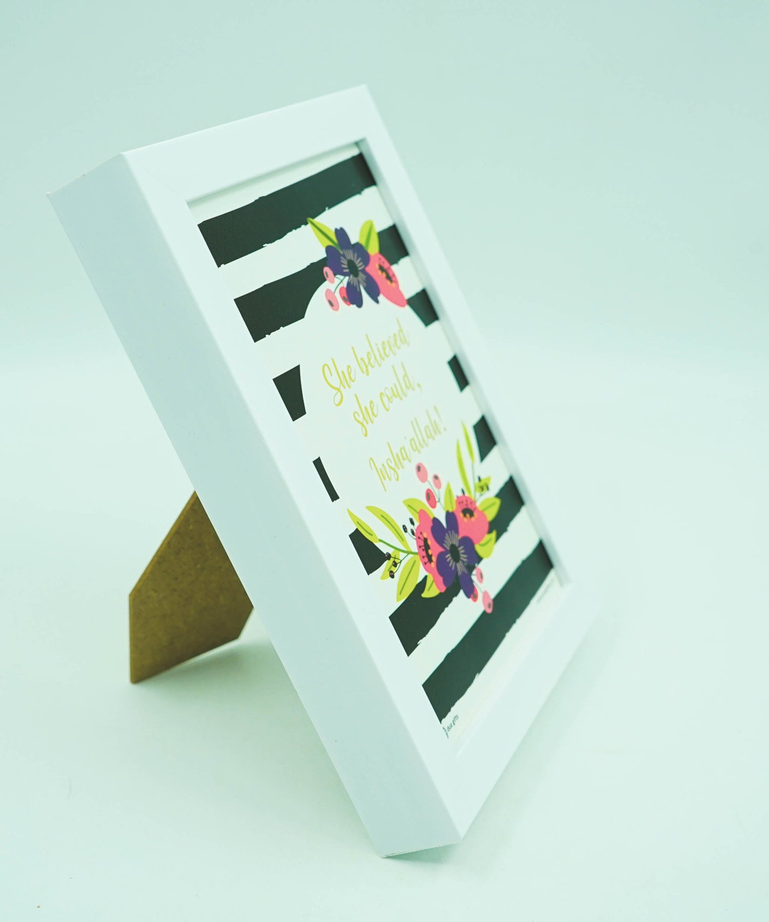 “Positive mind, positive vibe, positive life.” Surround yourself with these beautiful words of affirmation and motivation. Like a breath of fresh air, the Dua Gifts Framed Art warmly greets the mind, body and soul every time you walk into the room. The Dua Gifts Framed Art comes with a contemporary design that blends right into your home, office, or personal desk. Let a sense of calm wash over you with the soothing floral, abstract and pastel designs – a visual therapy for any time of the day. Each Dua Gifts Print Art “gifts” you with a powerful message that calls upon your inner peace, ease and gratitude. The message on your Dua Gifts Print Art is often short and sweet, yet beautiful to hold on to. Perfect as a gift for yourself or loved ones, it instantly brightens up spaces with meaningful messages and effortless elegance.