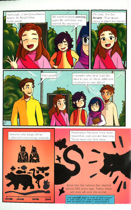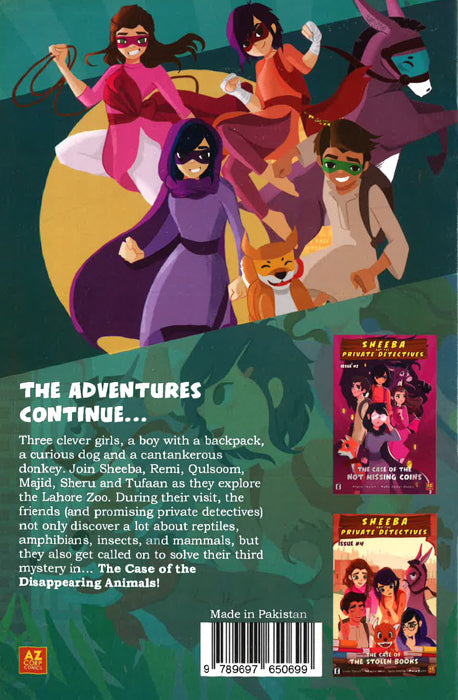 Three clever girls, a boy with a backpack, a curious dog and a cantankerous donkey. Join Sheeba, Remi, Qulsoom, Majid, Sheru and Tufaan as they explore the Lahore Zoo. During their visit, the friends (and promising private detectives) not only discover a lot about reptiles, amphibians, insects, and mammals, but they also get called on to solve their third mystery in... The Case of the Disappearing Animals!