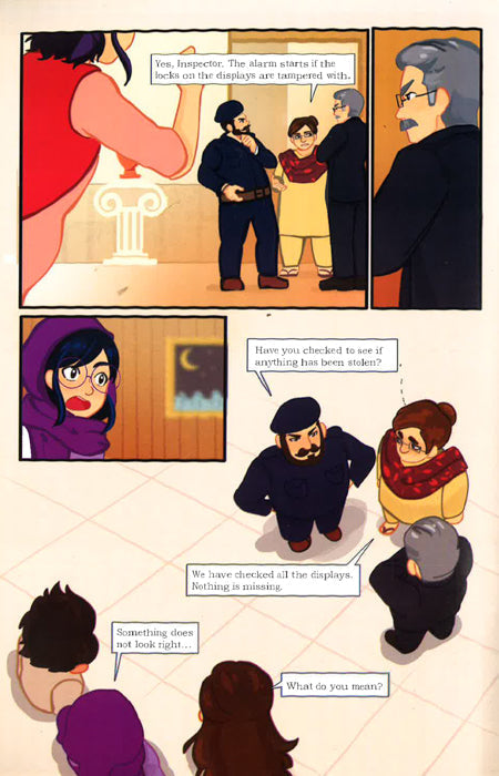 There's a problem at the National Museum, but no one can tell what exactly has gone wrong. Are the rare artifacts displayed in the Museum really fake? Will the Mohenjo Daro exhibit be shut down? Join Sheeba, Qulsoom, Reemi and Majid as they work alongside Dr. Kareem (a famous gemologist), the head of the police department, and Musuem officials to find out in.. The Case of the Not Missing Coins.