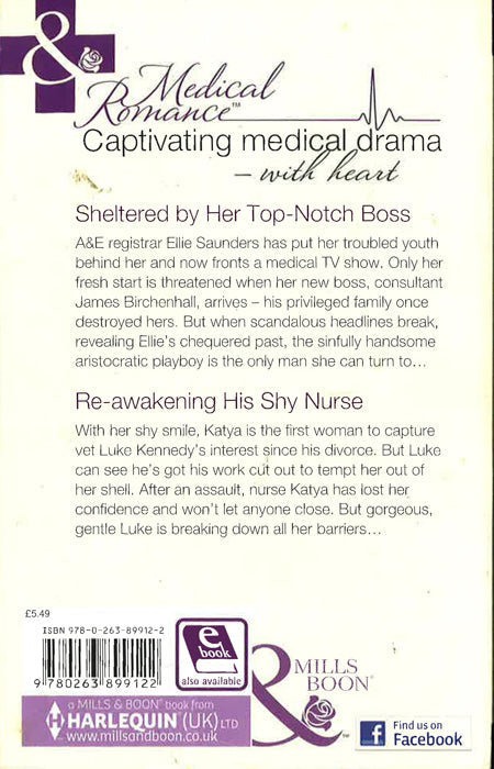 Sheltered by Her Top-Notch Boss A&E registrar Ellie Saunders has put her troubled youth behind her and now fronts a medical TV show. Only her fresh start is threatened when her new boss, consultant James Birchenhall, arrives - his privileged family once destroyed hers. But when scandalous headlines break, revealing Ellie's chequered past, the sinfully handsome aristocratic playboy is the only man she can turn to...Re-awakening His Shy Nurse With her shy smile, Katya is the first woman to capture vet Luke Kennedy's interest since his divorce. But Luke can see he's got his work cut out to tempt her out of her shell. After an assault, nurse Katya has lost her confidence and won't let anyone close. But gorgeous, gentle Luke is breaking down all her barriers...