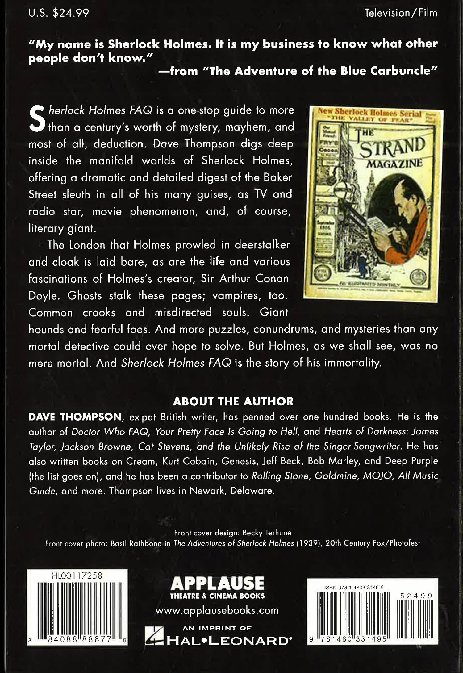 General Reference (FAQ). The Sherlock Holmes FAQ is a one-stop guide to over a century's worth of mystery, mayhem, and most of all, deduction. Digging deep inside the manifold worlds of Sherlock Holmes, the FAQ is a dramatic and detailed digest of the Baker Street sleuth in all of his many guises, as TV and radio star, movie phenomenon, and, of course, literary giant. Chapters investigate his predecessors and his successors, and discuss the influence that Holmes has had not only on other writers, but on real-life police procedures as well. The London that he perambulated in deerstalker and cloak is laid bare, plus the life and other fascinations of Holmes' creator, Sir Arthur Conan Doyle, are mapped out in all their foggy, darkened atmosphere. We meet giant hounds and fearful foes, common crooks and misdirected souls. Ghosts appear in these pages, and vampires, too and more puzzles, conundrums, and mysteries than any mortal detective could ever hope to solve. But Holmes, as we shall see, was no mere mortal. And Sherlock Holmes FAQ is the story of his immortality.
