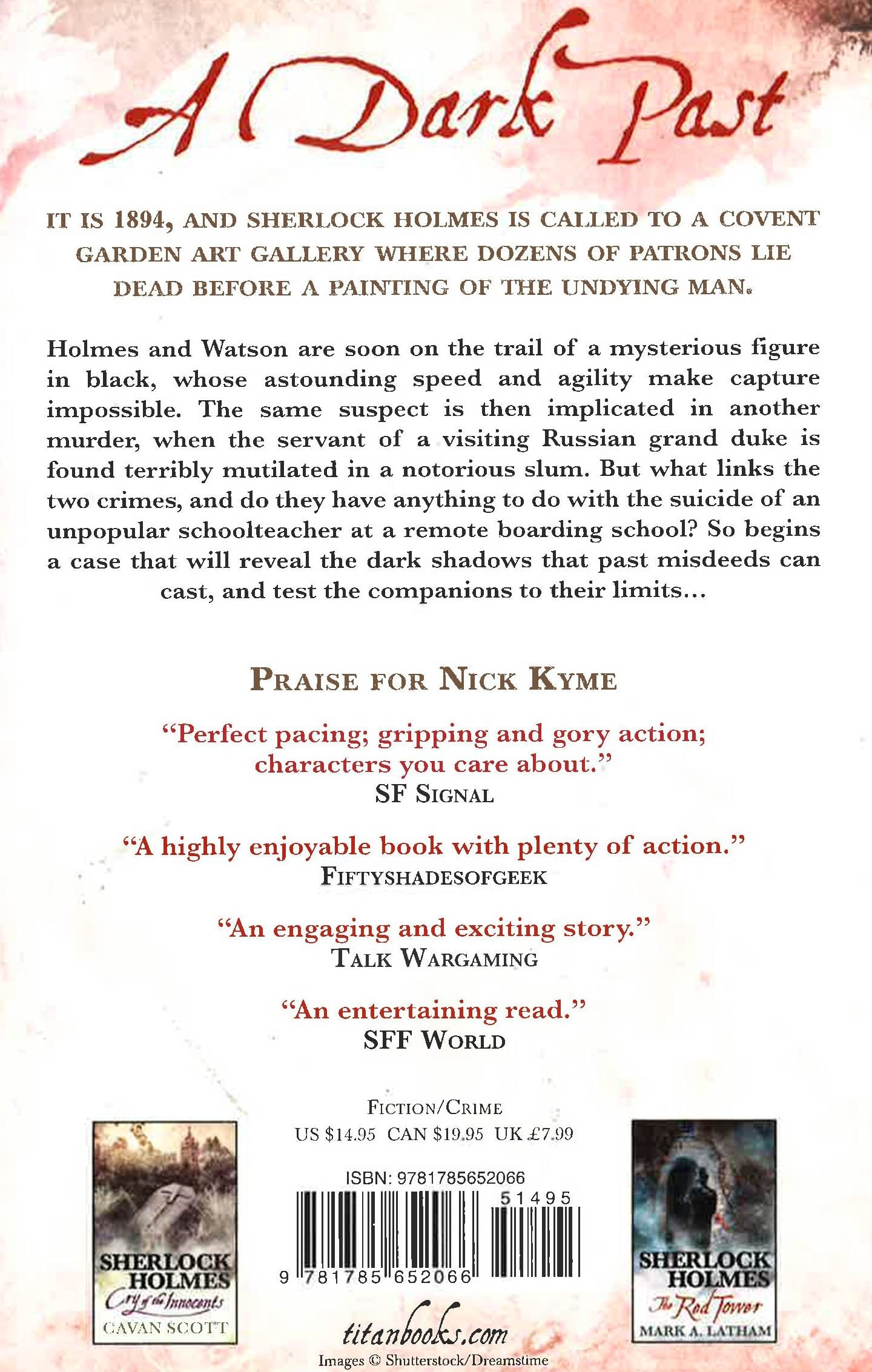 It is 1894, and Sherlock Holmes is called to a Covent Garden art gallery where dozens of patrons lie dead before a painting of the Undying Man.Holmes and Watson are soon on the trail of a mysterious figure in black, whose astounding speed and agility make capture impossible. The same suspect is then implicated in another murder, when the servant of a visiting Russian grand duke is found terribly mutilated in a notorious slum. But what links the two crimes, and do they have anything to do with the suicide of an unpopular schoolteacher at a remote boarding school? So begins a case that will reveal the dark shadows that past misdeeds can cast, and test the companions to their limits...