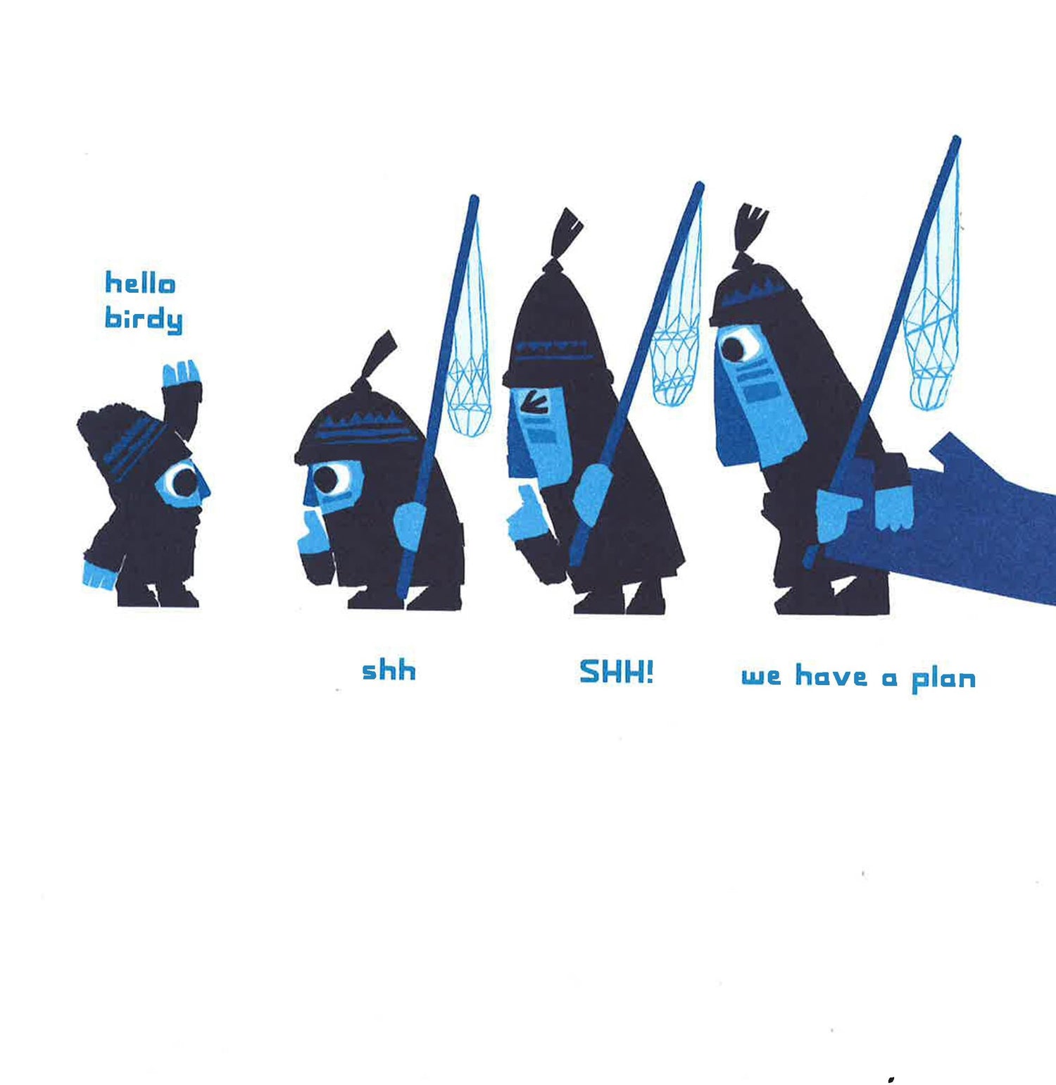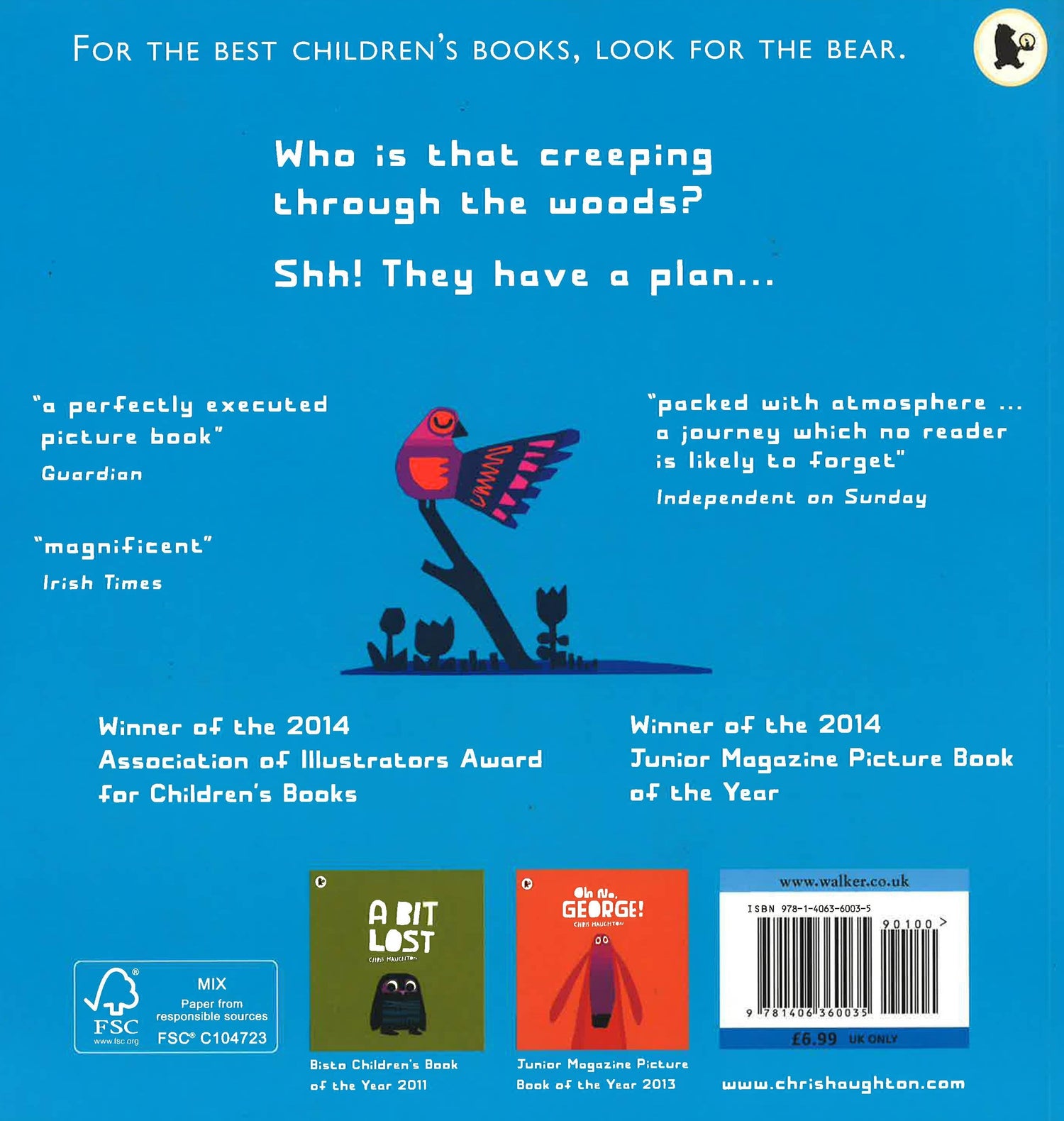 From Chris Haughton, the multi award-winning author-illustrator of A Bit Lost and Oh No, George!, comes a picture book about a beautiful bird, four friends and plans gone wrong... The friends are out for a walk. Suddenly, they spot it - a beautiful bird perched high in a tree! They simply must have it and - shh!- they have a plan. So they tip-toe very slowly, nets poised - "Ready one ... ready two ... ready three ... GO!" But, at the turn of the page, we find a ridiculous bunch of very tangled characters and a blissfully oblivious bird, flying away. One hilarious foiled plan after another and it's clear that this goofy gang cannot catch that elusive birdie! But the littlest of this group, a quiet spectator up until now, knows that a bit of kindness can go a long way... Will his friends follow his gentle lead or will they get themselves into even more trouble?