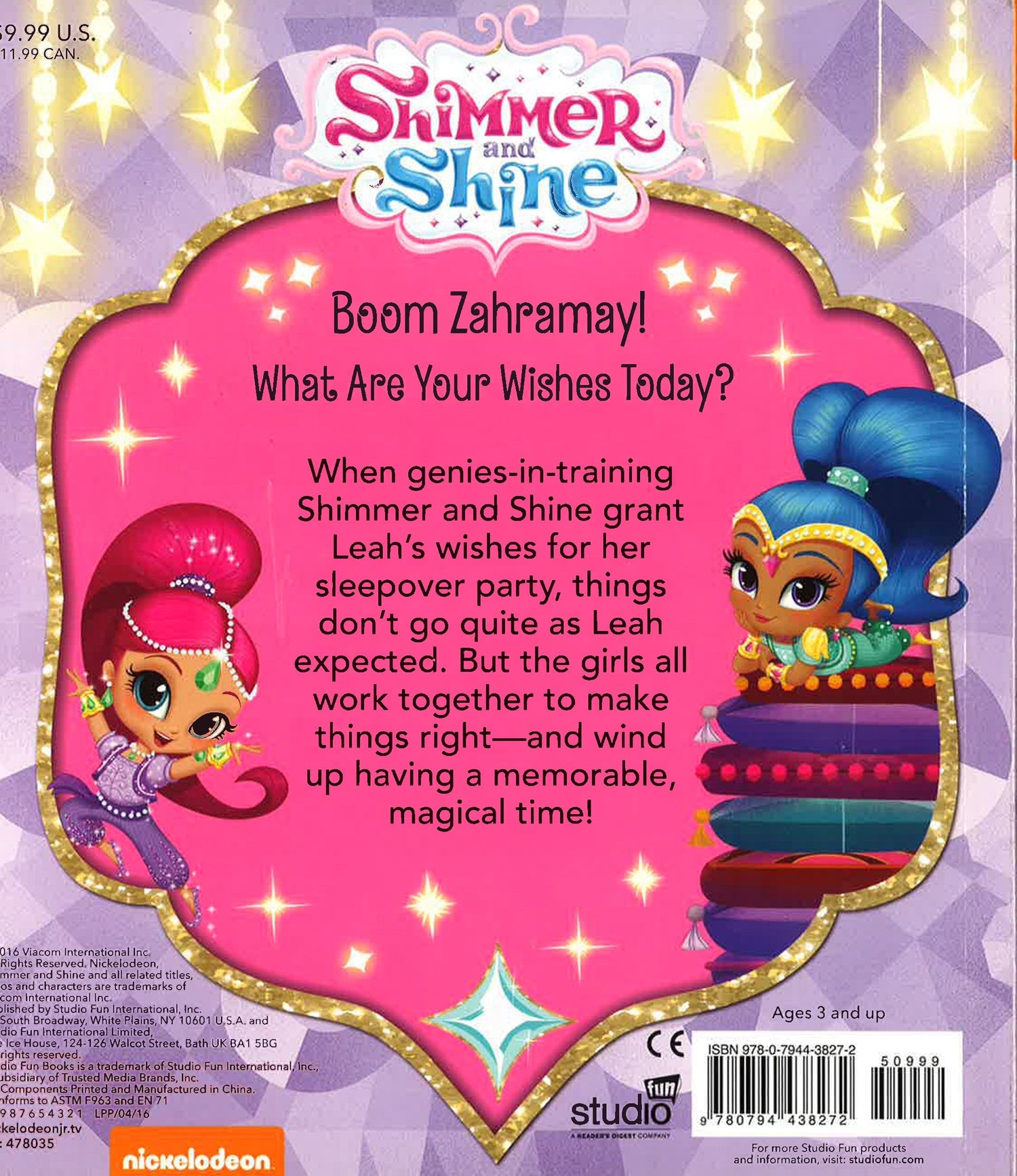 When genies-in-training Shimmer and Shine grant Leah’s wishes for her sleepover party, things don’t go quite as Leah expected. But the girls all work together to make things right—and wind up having a memorable, magical time!