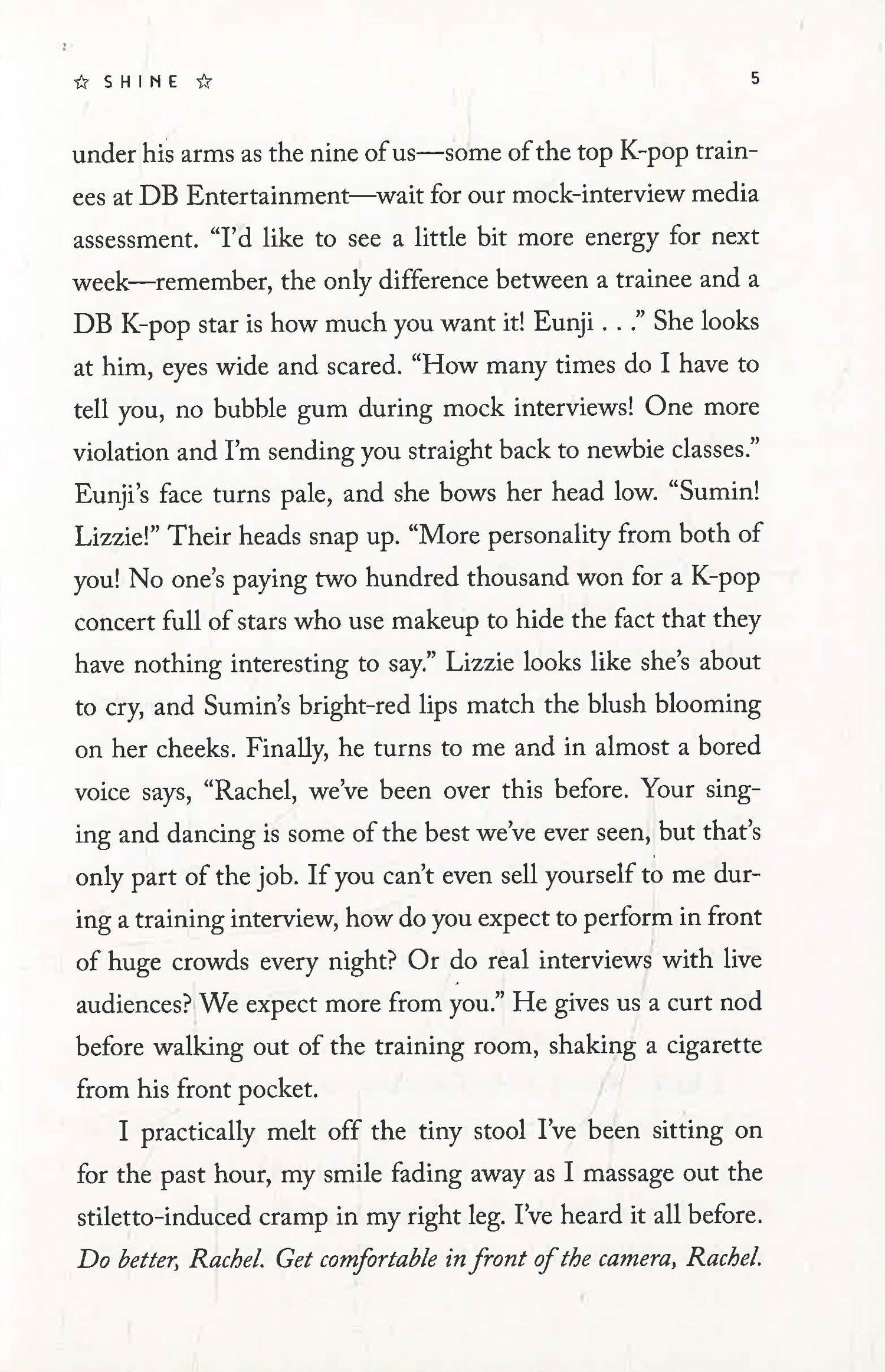 Not so much. As the dark scandals of an industry bent on controlling and commodifying beautiful girls begin to bubble up, Rachel wonders if she’s strong enough to be a winner, or if she’ll end up crushed… Especially when she begins to develop feelings for K-pop star and DB golden boy Jason Lee. It’s not just that he’s charming, sexy, and ridiculously talented. He’s also the first person who really understands how badly she wants her star to rise.