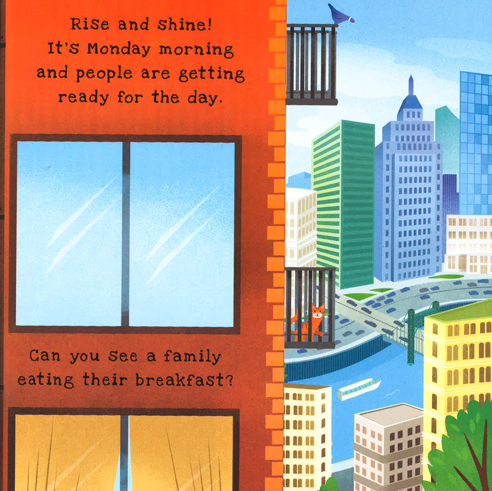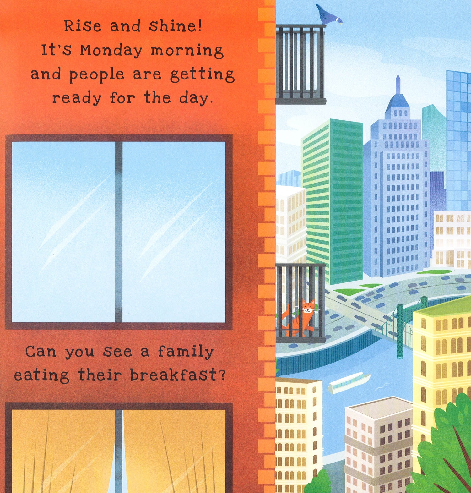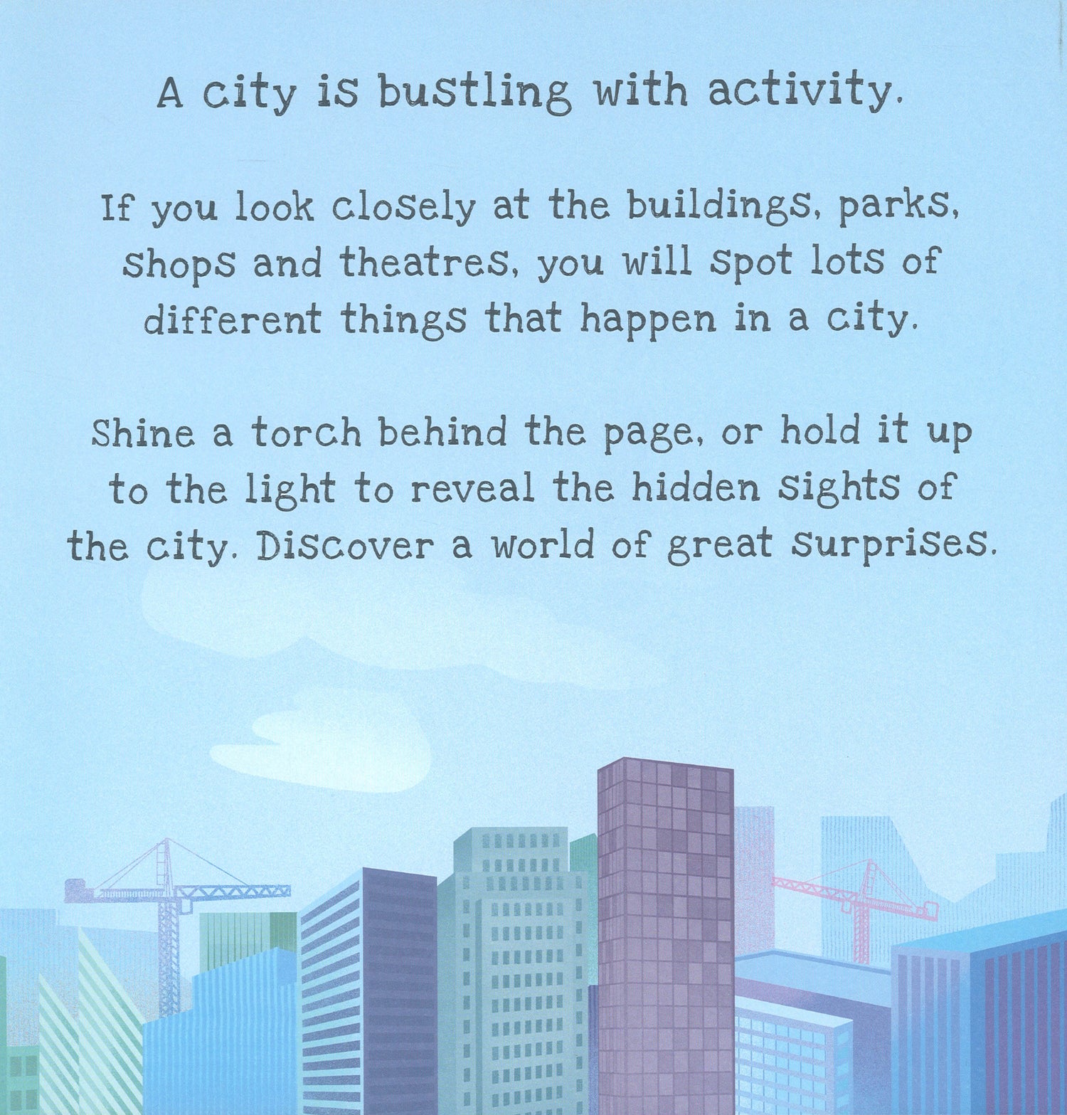 Meet a family who live in the city and discover what they do and where they go! Spend a day in the city and follow the family as they travel to work and to school, shop, relax in the park, enjoy a play, and eat dinner in a restaurant. A wonderful first introduction to life in the big city with a unique design that adds a whole new dimension of enjoyment for children, this book is a fun and innovative non-fiction title for your child's bookshelf.