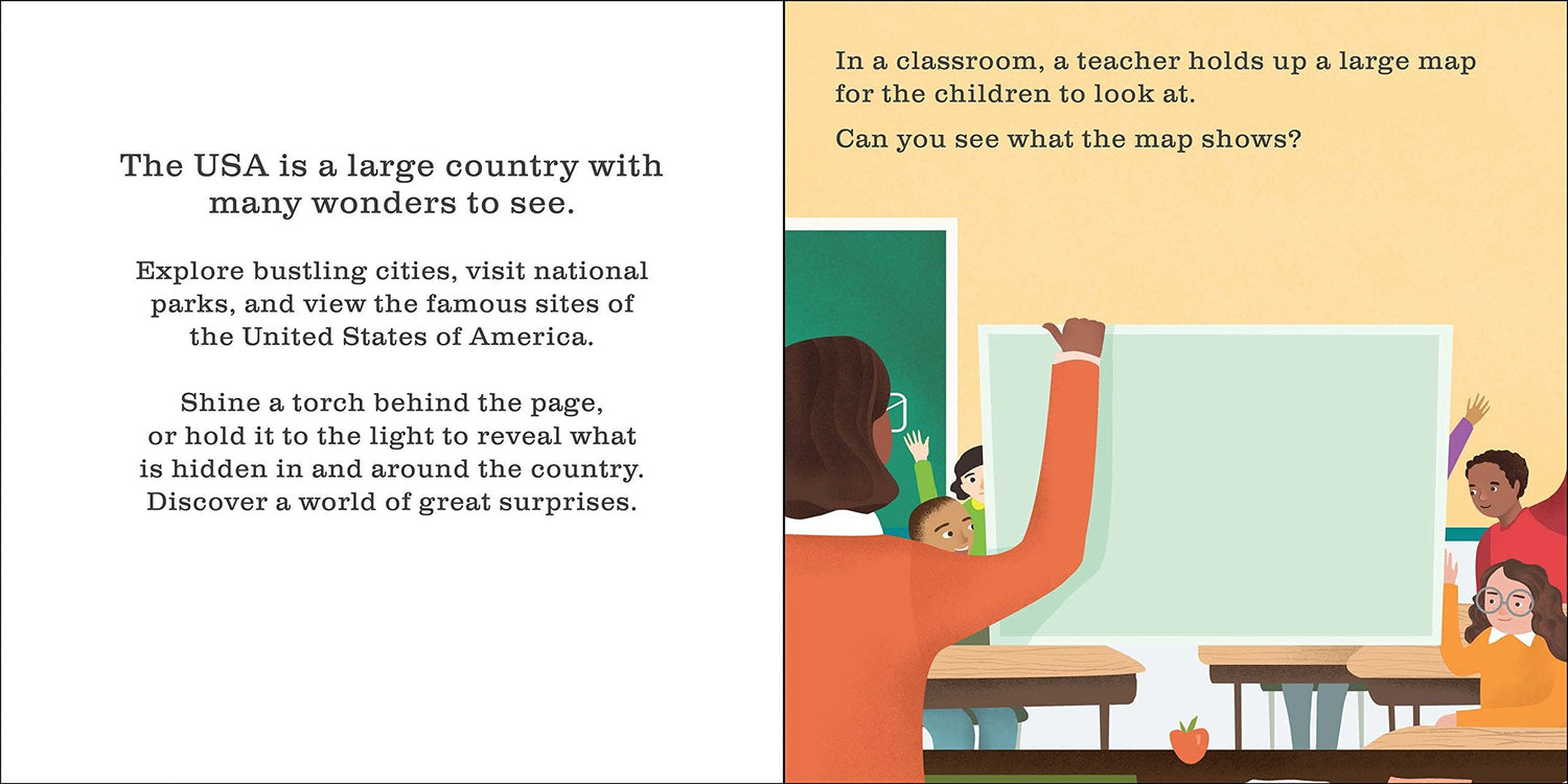 Take a trip across the USA and explore its natural and manmade landmarks with this new title in the wonderful Shine-a-Light series. Informative and visually exciting, this whistle-stop tour takes children from Hawaii to the Everglades and from the White House to the Statue of Liberty. For children aged 3 and up, this is the perfect introduction to the wonders of the USA.