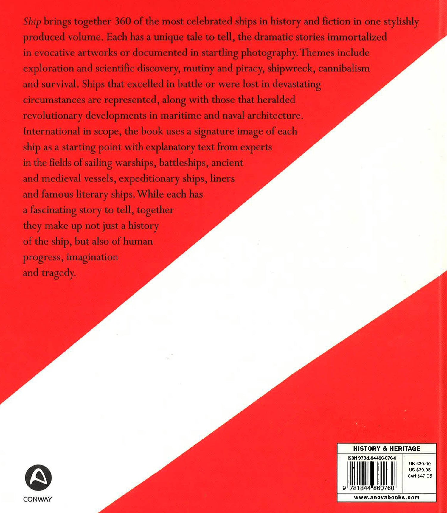 Celebrate mankind's 3,000 years at sea with a spectacular record of 360 well-known ships in history and fiction. Each page offers the story of a famous (or in some cases, infamous) vessel, illustrated with a stunning photograph or painting, and complete with technical specifications of the ship's construction, size, crew, and tonnage. The drama of the high seas is brought to life: an arresting news photo of the Torrey Canyon, broken in two on a reef in the English Channel, accompanies the story of the world's first major supertanker oil spill. Many entries discuss innovations in ship design, while others tell tales of battle and exploration, mutiny and piracy, shipwreck and survival.