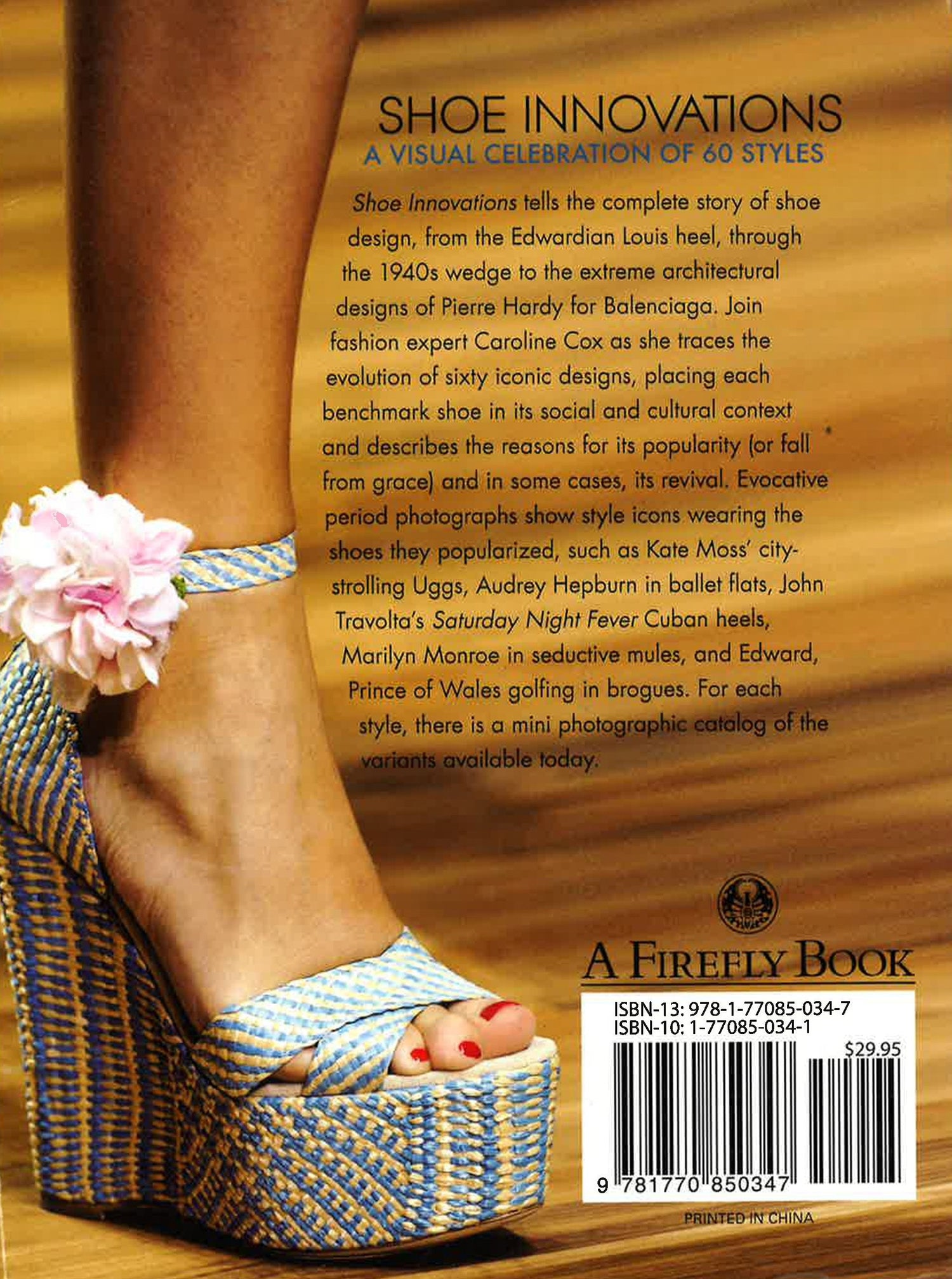 An illustrated survey of the most iconic shoe designs from the Edwardian Period to today. Shoe Innovations is an enthralling survey of 60 of the most iconic shoe styles of the 20th and 21st centuries, from the Edwardian Louis heel, through the 1940s wedge, to the extreme architectural designs of Pierre Hardy for Balenciaga. It showcases a wide range of the most revered designers and their most sought-after creations. Fashion expert Caroline Cox traces the evolution of high-fashion shoes, placing each benchmark design in its social, historical and cultural contexts and describing the reasons for its popularity (or fall from grace) and in some cases its revival. Along the way, she reviews the pioneering work of key designers and manufacturers, and highlights successful celebrity-brand associations like Kate Moss and Vivienne Westwood, and the stars of Sex and City and Manolo Blahnik. Evocative period photographs of style icons wearing the shoes highlight the informative descriptions. Detail-revealing close-ups and original designer sketches delve deeper into the creative process. For each shoe design, there is also a mini photographic catalog of the style variations available today. Shoe Innovations is an inspirational guide to the history of stylish shoes and a unique catalog of cutting-edge shoe design, proving that shoes are not only a key component of fashion but also an art form in their own right. It is the perfect book for shoe lovers everywhere.