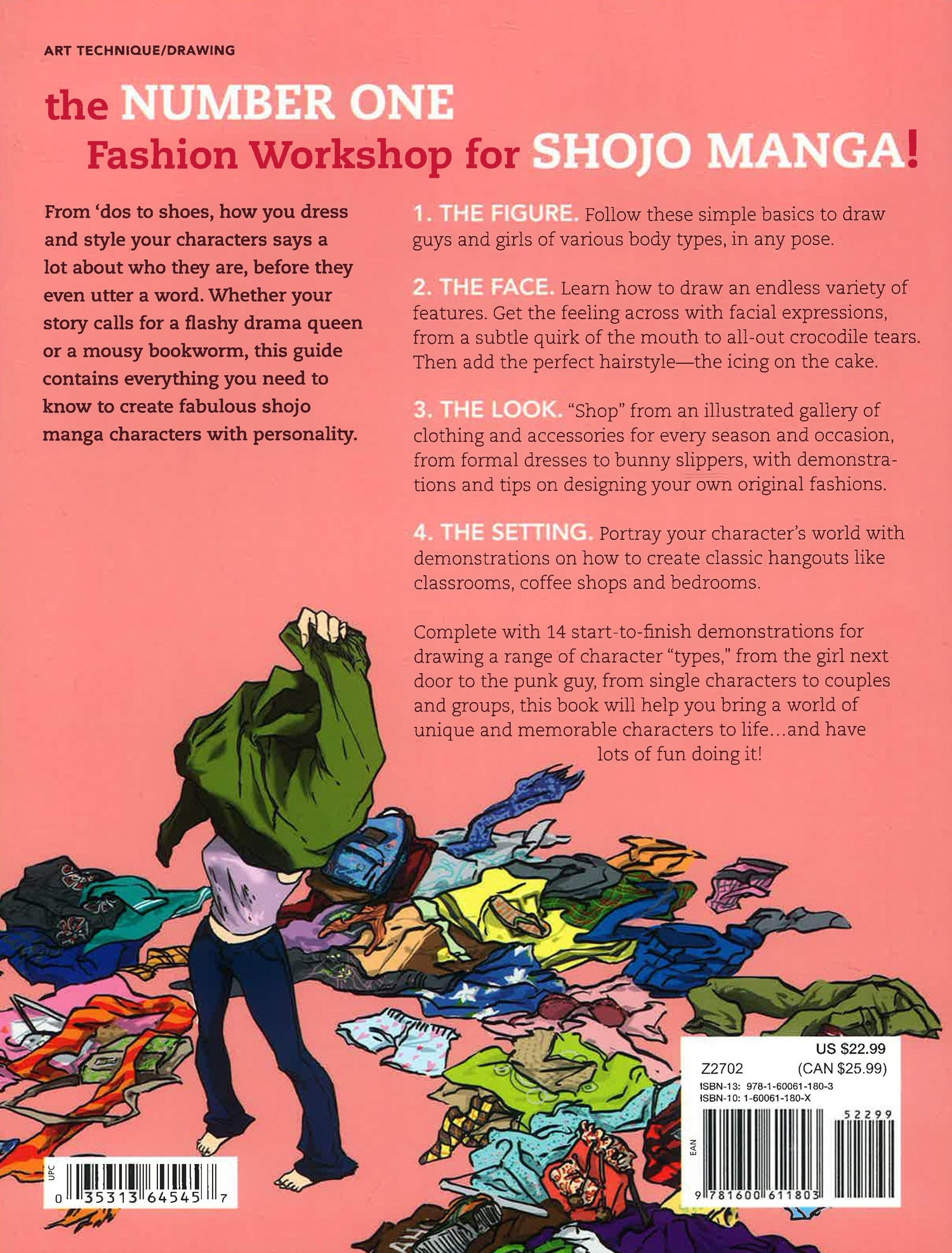 Free your inner drama queen by drawing fantastic fashion shojo manga (Japanese-style girls' comics) with this resource that teaches you how to depict young characters with style using different elements for exciting results. Create fabulous shojo manga clothing and characters with different looks, primarily in pencil and ink. Loaded with techniques and tips from an exciting young artist, this book demonstrates the Japanese comic-book practices of stylized proportions, clean lines and contrast between black and white (manga is usually published in black and white), with some finished art in colour. It covers basic techniques; heads, including eyes, noses, mouths, ears, skin tones, makeup, hair and facial expressions; bodies; clothes and accessories; different looks; as well as, step-by-step chapters on putting it all together to create specific looks and cool settings.