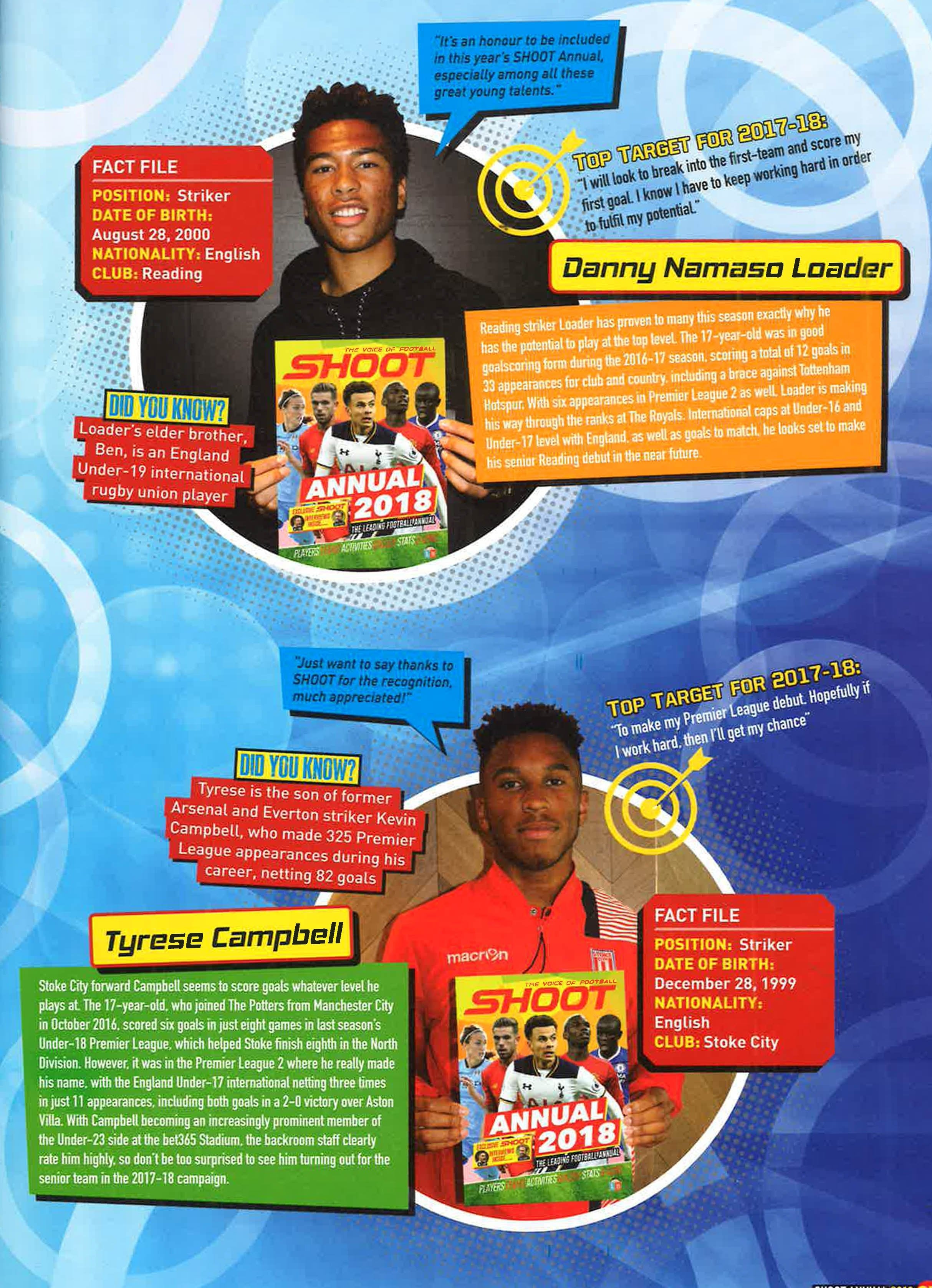 Shoot, `The Voice of Football', is the UK's leading Football Annual returns for another scintillating season. This 80 page Annual is more crammed than the Kop on derby day! Featuring exclusive interviews with the world's best players, fun-football related activities, stats on your favourite teams as well as comprehensive coverage from all the action in the Premier League, Europe and the best of World Football. With stunning images, superstar profiles and so much more to keep the most avid football fan amused, Shoot is THE Annual for any lover of the beautiful game. I grew up reading SHOOT, so it's an absolute privilege to actually feature in it! --Jacob Bedeau, Aston Villa It's an honour to be included in this year's SHOOT Annual, especially among all these great young talents --Danny Namaso Loader, Reading Just wanted to say thanks to SHOOT for the recognition, much appreciated! --Tyrese Campbell, Stoke City