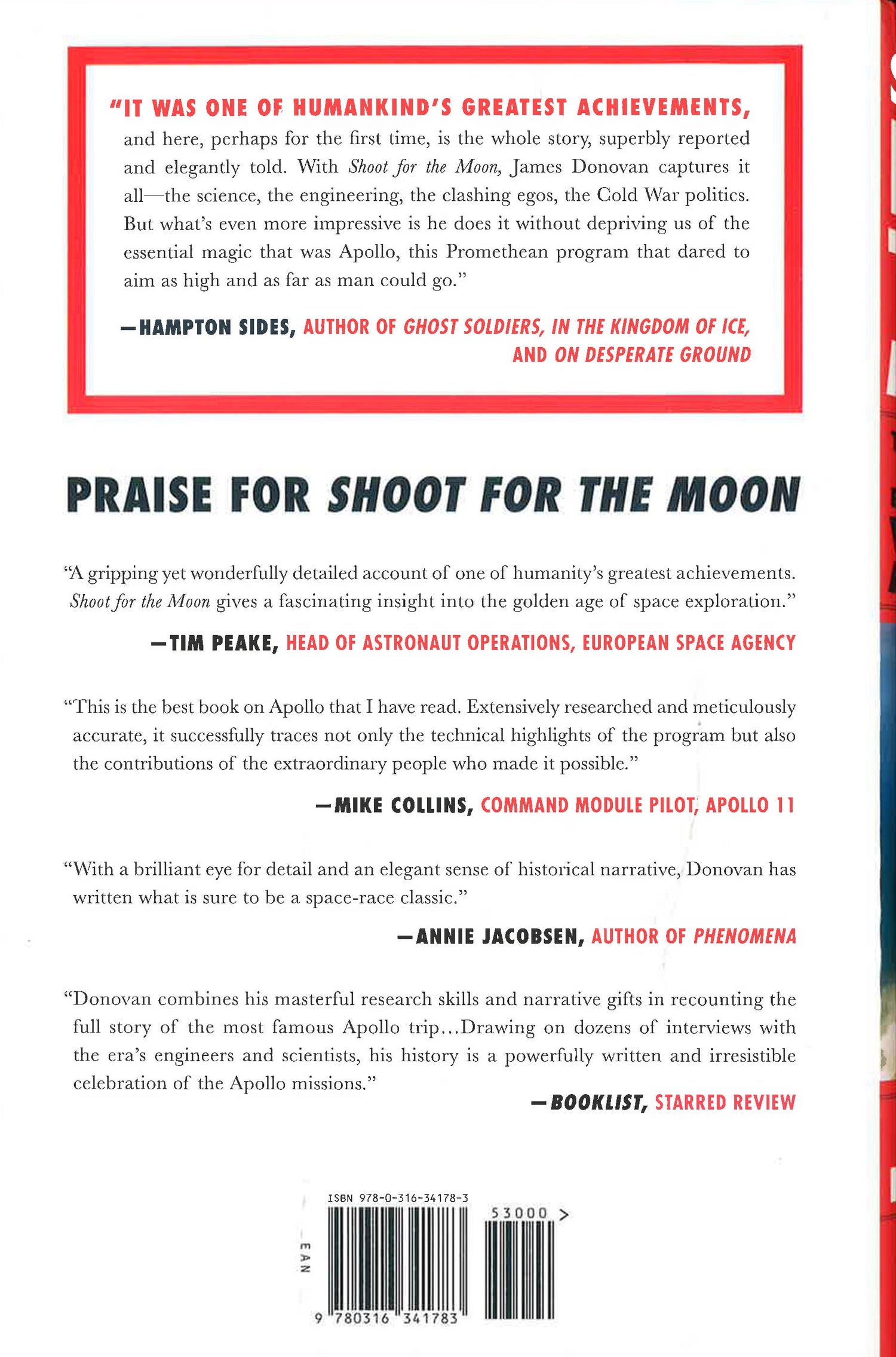 Set amid the tensions and upheaval of the sixties and the Cold War, Shoot for the Moon is a gripping account of the dangers, the challenges, and the sheer determination that defined not only Apollo 11, but also the Mercury and Gemini missions that came before it. From the shock of Sputnik and the heart-stopping final minutes of John Glenn's Mercury flight to the deadly whirligig of Gemini 8, the doomed Apollo 1 mission, and that perilous landing on the Sea of Tranquility -- when the entire world held its breath while Armstrong and Aldrin battled computer alarms, low fuel, and other problems -- James Donovan tells the whole story.