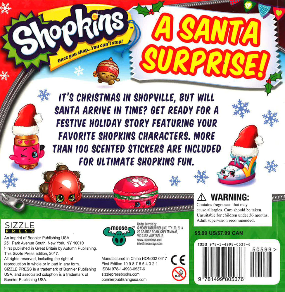 Join your favorite Shopkins characters from seasons 1-5 as they transform the Shopville ice cream shop into Santa's Workshop in this brand-new Christmas story! A sheet of 100 scented stickers adds to the fun. The Shopkins decide to celebrate Christmas by transforming the ice cream shop into Santa's Workshop. Everyone in Shopville is given their own exciting task except for Chrissy Present and Poppy Cracker. Will the two Shopkins be left out of the Christmas fun altogether, or will they learn that they have the most important job of all? Follow the Shopkins characters from seasons 1-5 as they celebrate Christmas in Shopville in this brand-new holiday story. Scented stickers add fun play value.