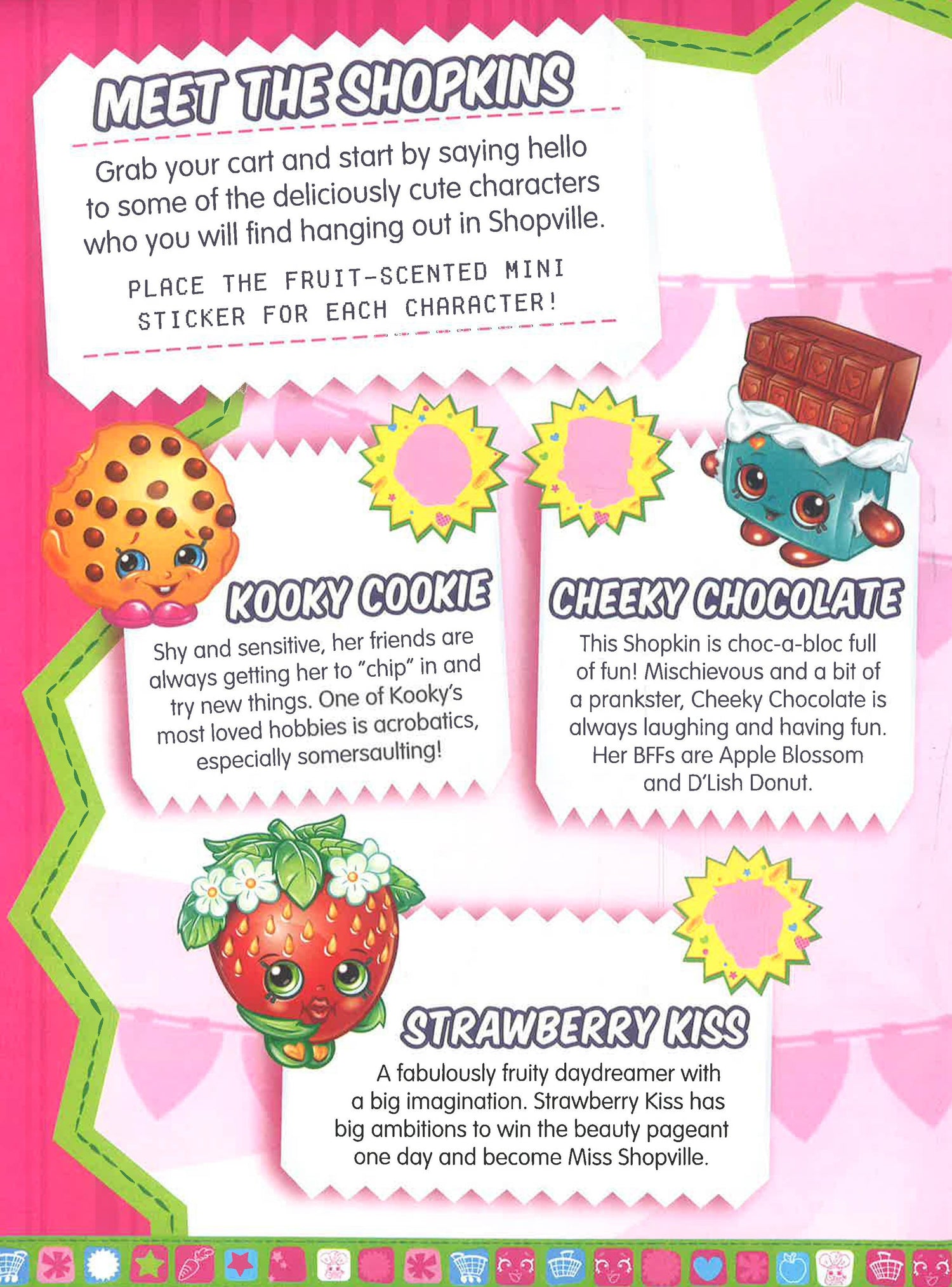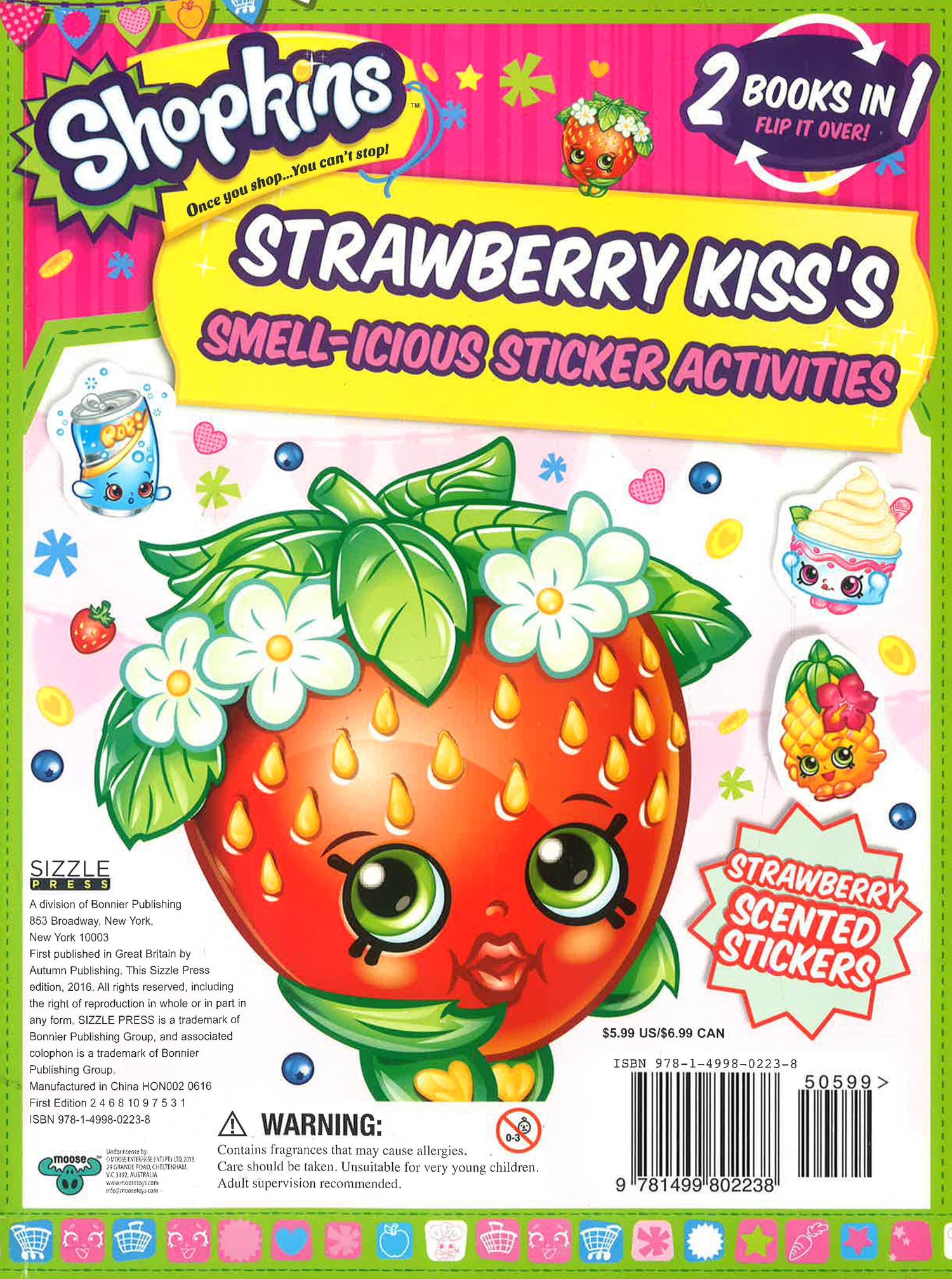 Meet the adorable Shopkins! This flip book contains two brand-new sticker books that come with deliciously scented stickers! Shopkins is a top-selling toy property that features more than 300 cute grocery store characters to collect, trade, and swap. In this bind-up, kids will meet the adorable Shopkins in two brand-new flip books that come with 50 deliciously scented stickers in each book! Featuring the gang of collectible characters, each book is packed with colorful Shopville pictures to add stickers to and pages to color. Sticker the pages to create smell-icious scenes with fruit and strawberry scented stickers!