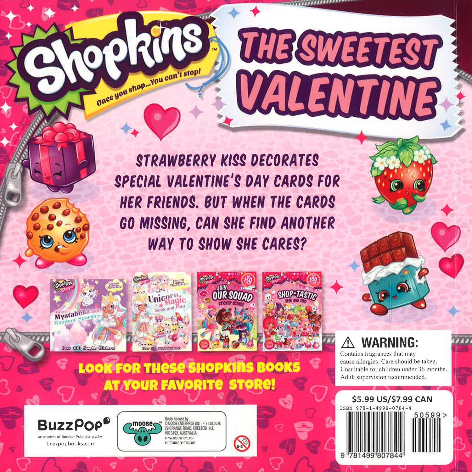 Join Strawberry Kiss and her Shopkins friends as they celebrate her favorite holiday: Valentine's Day! A sheet of 100 sweet-smelling stickers adds to the fun. Strawberry Kiss decides to decorate special valentines for her friends to celebrate her favorite holiday. But when the cards go missing, Strawberry Kiss has to find another way to show her friends how much they mean to her. Follow along in this Shopkins adventure as Strawberry Kiss learns that Valentine's Day is about more than just chocolate and cards; it's about showing your friends how special they are! Scented stickers add to the fun!