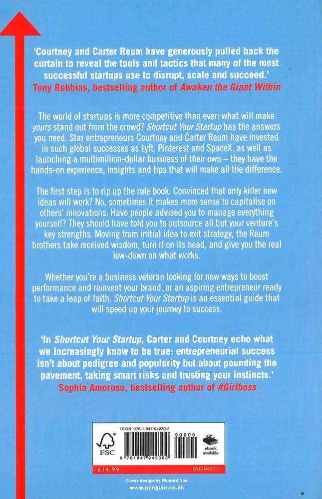 `Shortcut Your Startup shows you how to launch a sustainable startup so that both you and your business can thrive.' Arianna Huffington The world of startups is more competitive than ever: what will make yours stand out from the crowd? Shortcut Your Startup has the answers you need. Star entrepreneurs Courtney and Carter Reum have invested in such global successes as Lyft, Pinterest and SpaceX, as well as launching a multimillion-dollar business of their own - they have the hands on experience, insights and tips that will make all the difference. The first step is to rip up the rule book. Convinced that only killer new ideas will work? No, sometimes it makes more sense to capitalise on others' innovations. Have people advised you to manage everything yourself? They should have told you to outsource all but your venture's key strengths. Moving from initial idea to exist strategy, the Reum brothers take received wisdom, turn it on its head, and give you the real low-down on what works. Whether you're a business veteran looking for new ways to boost performance and reinvent your brand, or an aspiring entrepreneur ready to take a leap of faith, Shortcut Your Startup is an essential guide that will speed up your journey to success. `Courtney and Carter Reum have generously pulled back the curtain to reveal the tools and tactics that many of the most successful startups use to disrupt, scale and succeed.' Tony Robbins