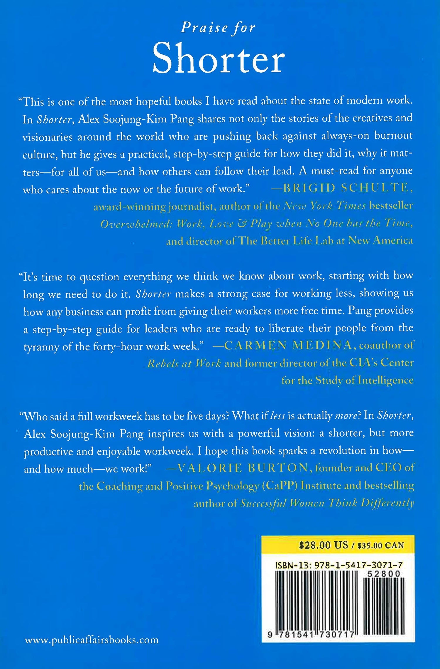 But what if there is another way? Shorter tells the story of entrepreneurs and leaders all over the world who have discovered how to shrink the workweek without cutting salaries or sacrificing productivity or revenues. They show that by reducing distractions, eliminating inefficiencies, and creating time for high-quality focus and collaboration, 4-day workweeks can boost recruitment and retention, make leaders more thoughtful and companies more sustainable, and improve work-life balance. Using design thinking, a business and product development process pioneered in Silicon Valley, futurist and consultant Alex Pang creates a step-by-step guide for readers to redesign their workdays.