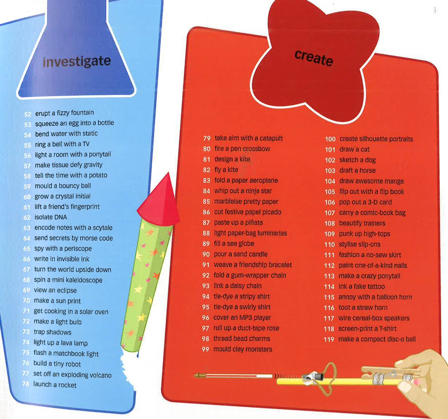 Are you the crafty type? Try drawing some manga or customizing your sneakers. Got a soft spot for science? Dazzle your friends with the old exploding volcano trick, then slyly ease an egg into a bottle. Or you can really get cooking by slipping fortunes into a batch of cookies and folding them like a pro. From taking funny fake photos to breeding butterflies, from running a ninja obstacle course to reading minds to, yes, whipping up some edible fake barf, here is the source for learning how to do absolutely everything. With minimal text and maximal humor, these simple illustrated instructions will have kids psyched to: Investigate (science projects anyone can do), Create (arts, crafts, and personal style), Explore (adventures in the great outdoors), Cook (recipes for tasty and terrifying treats), Move (sports, games, and playground acrobatics), Amaze (tricks, pranks, and awesome acts). The activities in this book are designed for adventurous children aged ten plus. While we've made avery effort to ensure that the information is accurate, reliable and totally cool, please assess your child's suitability for a particular activity, and provide adult supervision as appropriate. We disclaim all liability for any unintended, unforeseen or improper application of the suggestions featured. We will, however, be happy to accept the credit for increased awesomeness.
