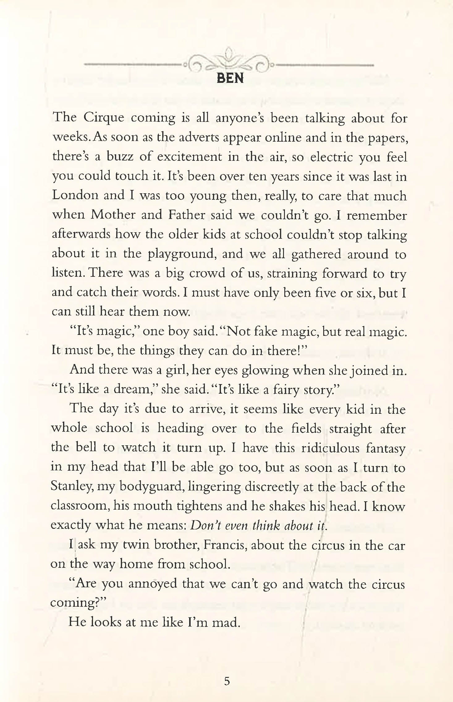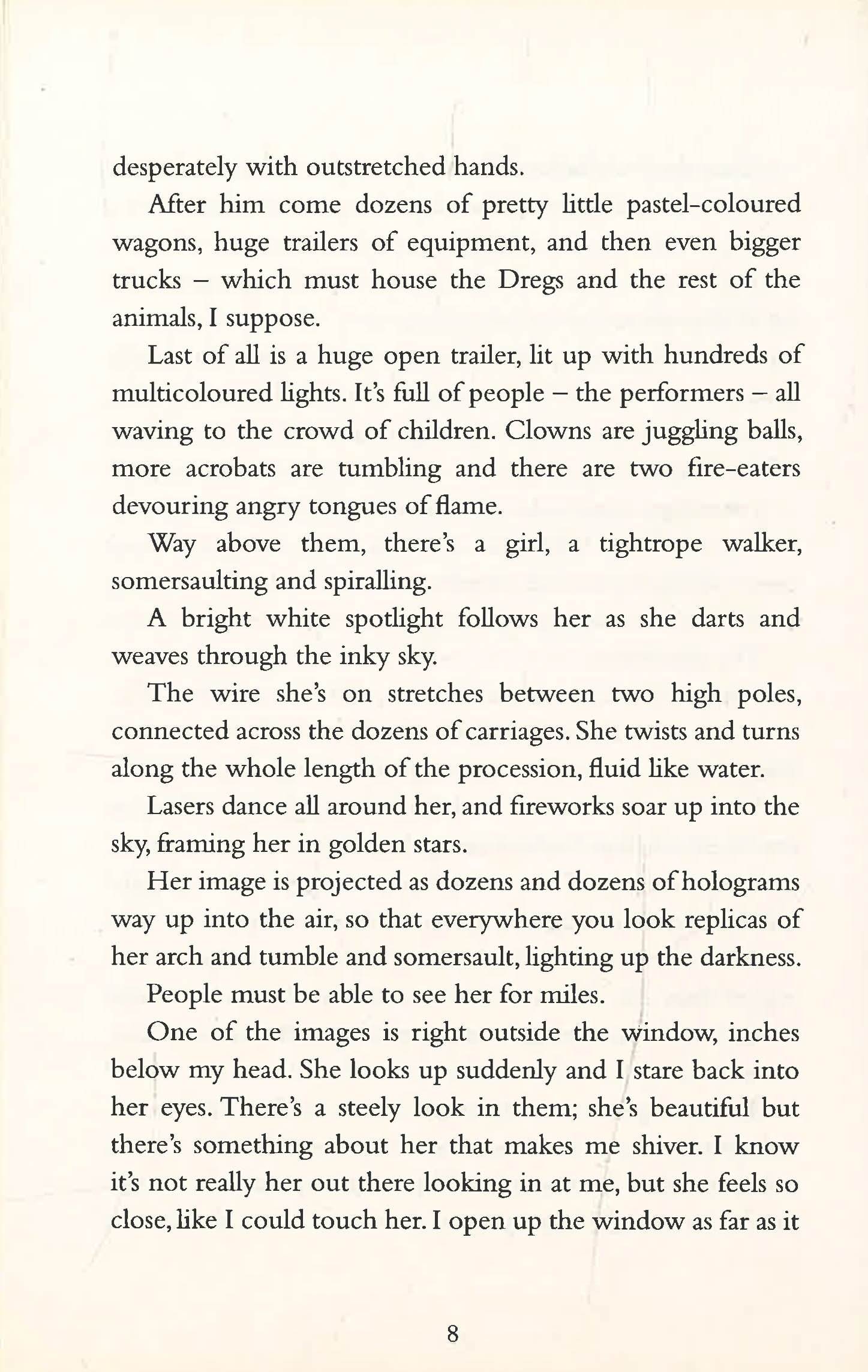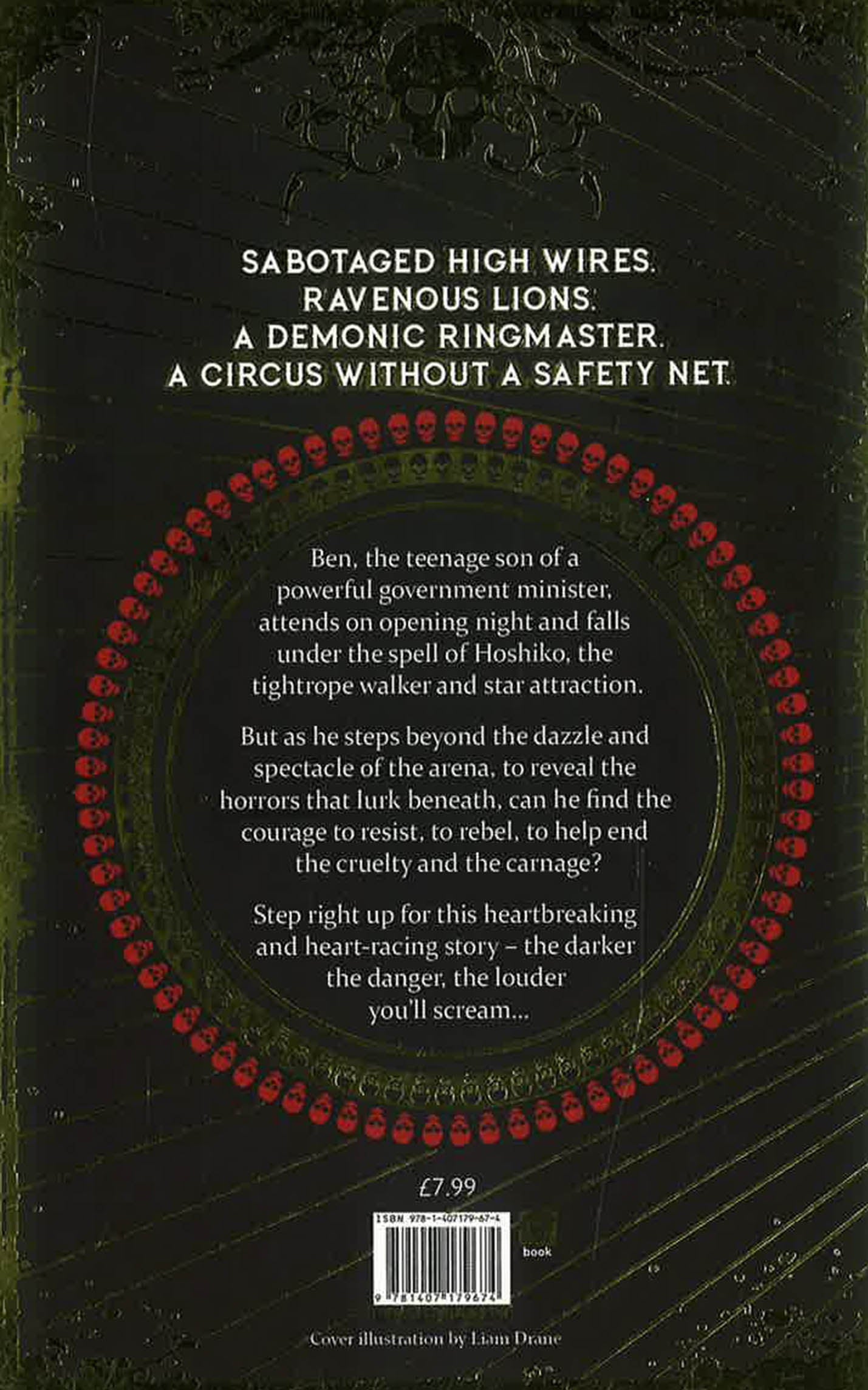 A dazzling, high-octane read filled with death-defying acrobatics, circus crowds with an appetite for disaster, and two forbidden teenage lovers trying to escape the shackles of their very different lives. Set in a near-future England where the poorest people in the land must watch their children be taken by a travelling circus - to perform at the mercy of hungry lions, sabotaged high wires and a demonic ringmaster. The ruling class visit the circus as an escape from their structured, high-achieving lives - pure entertainment with a bloodthirsty edge. Ben, the teenage son of a draconian government minister, visits the circus for the first time and falls instantly in love with Hoshiko, a young performer. They come from harshly different worlds - but must join together to escape the circus and put an end to its brutal sport.