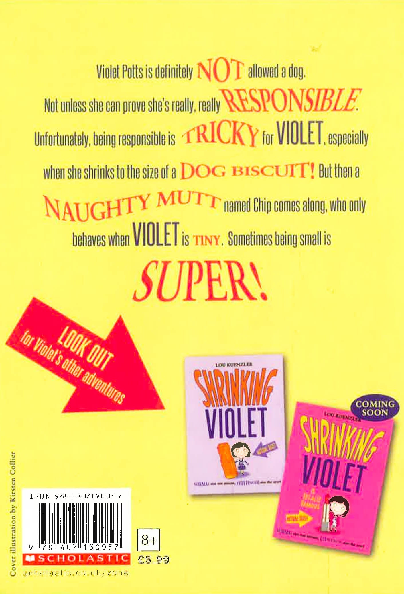 Violet is desperate for a dog, but she's not allowed one. Luckily there's a dog walking scheme that she and her friend Nisha can join. The girls love playing with their designated puppy. Until Violet surprises Nisha by shrinking to the size of a dog biscuit! Sometimes being tiny is terrifying! But then disaster strikes at the dog show, and Violet discovers her small size might win her a prize...