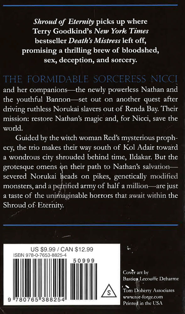Shroud of Eternity picks up where Terry Goodkind's New York Times bestseller Death's Mistress left off, promising a thrilling brew of bloodshed, sex, deception, and sorcery.
