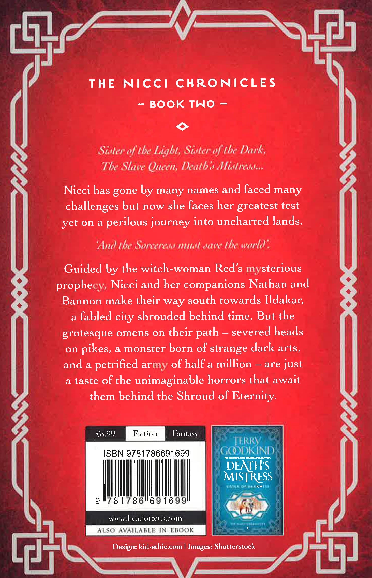 Sister of the Light, Sister of the Dark. The Slave Queen, Death's Mistress. Nicci has gone by many names and faced many challenges, but now she faces her greatest test yet on a perlious journey into uncharted lands. 'And the Sorceress must save the world'. Guided by the witch-woman Red's mysterious prophecy, Nicci and her companions Nathan and Bannon make their way south of Kol Adair towards Ildakar, a fabled city shrouded behind time. But the grotesque omens on their path - severed heads on pikes, a monster born of dark arts, and a petrified army of half a million - are just a taste of the unimaginable horrors that await within the Shroud of Eternity.