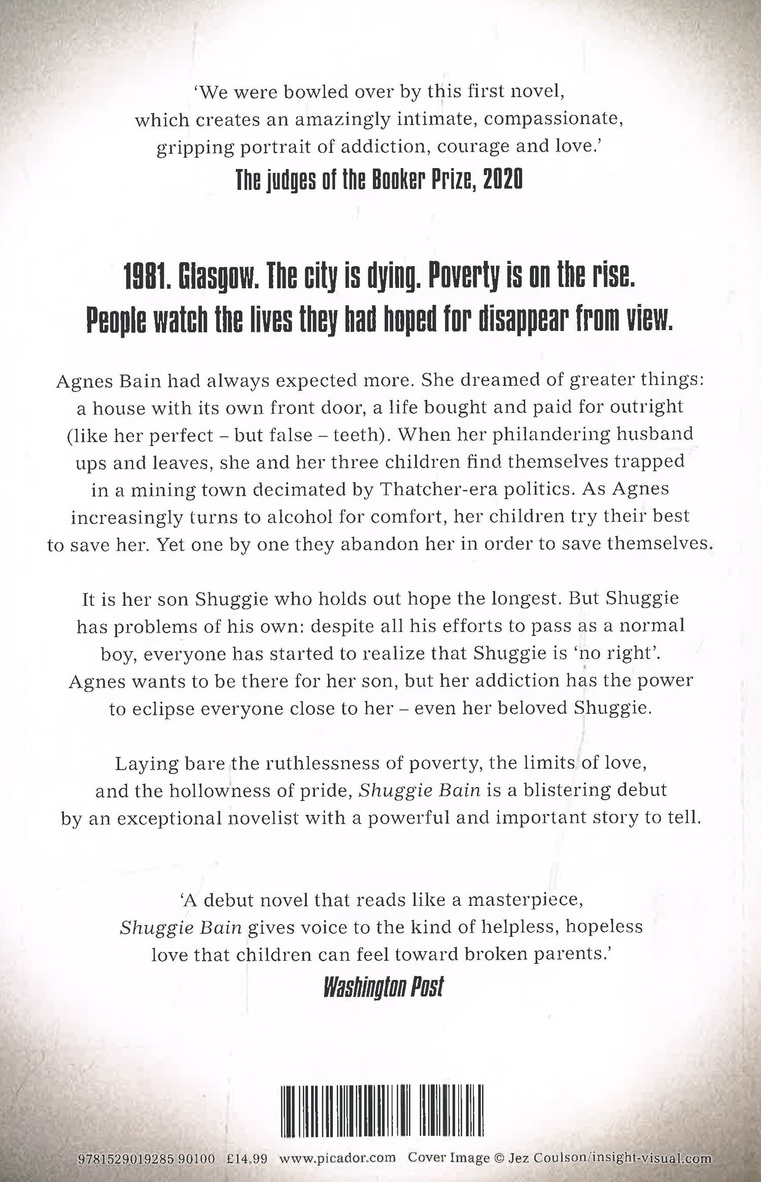 It is 1981. Glasgow is dying and good families must grift to survive. Agnes Bain has always expected more from life, dreaming of greater things. But Agnes is abandoned by her philandering husband, and as she descends deeper into drink, the children try their best to save her, yet one by one they must abandon her to save themselves.