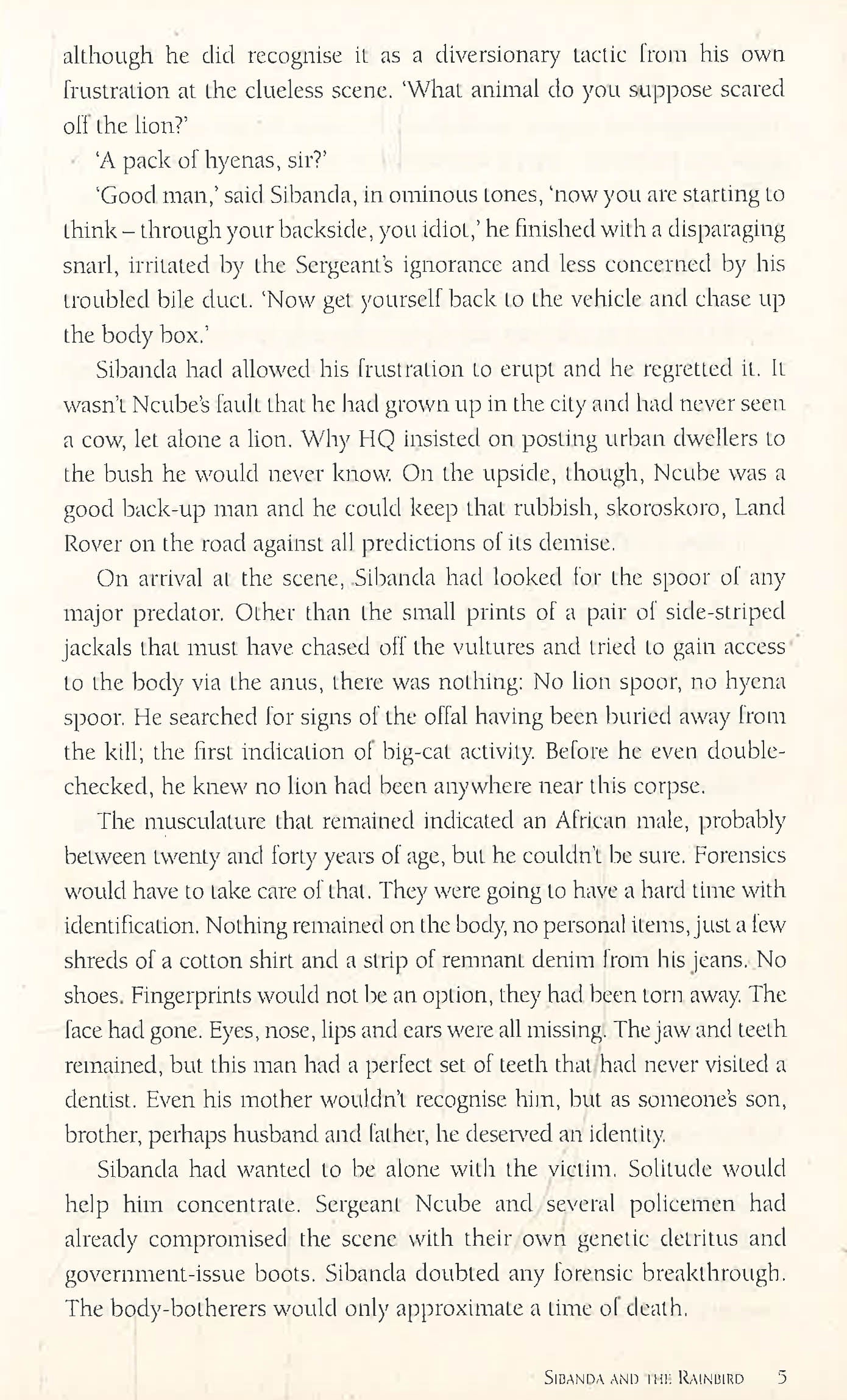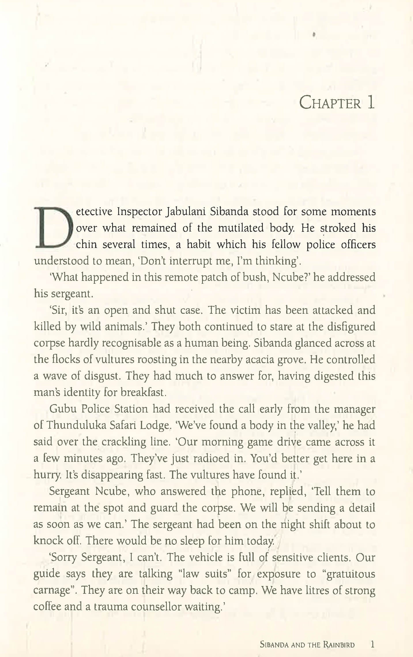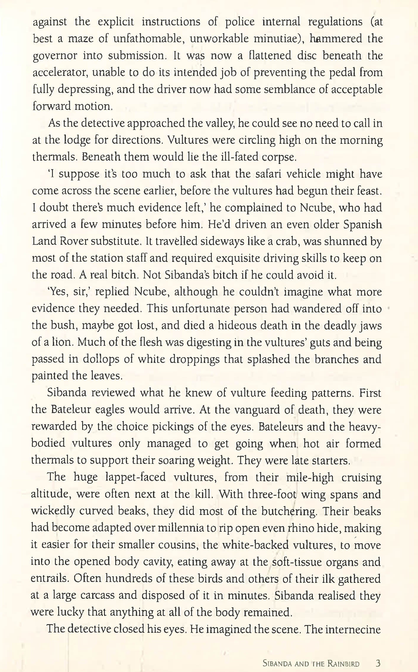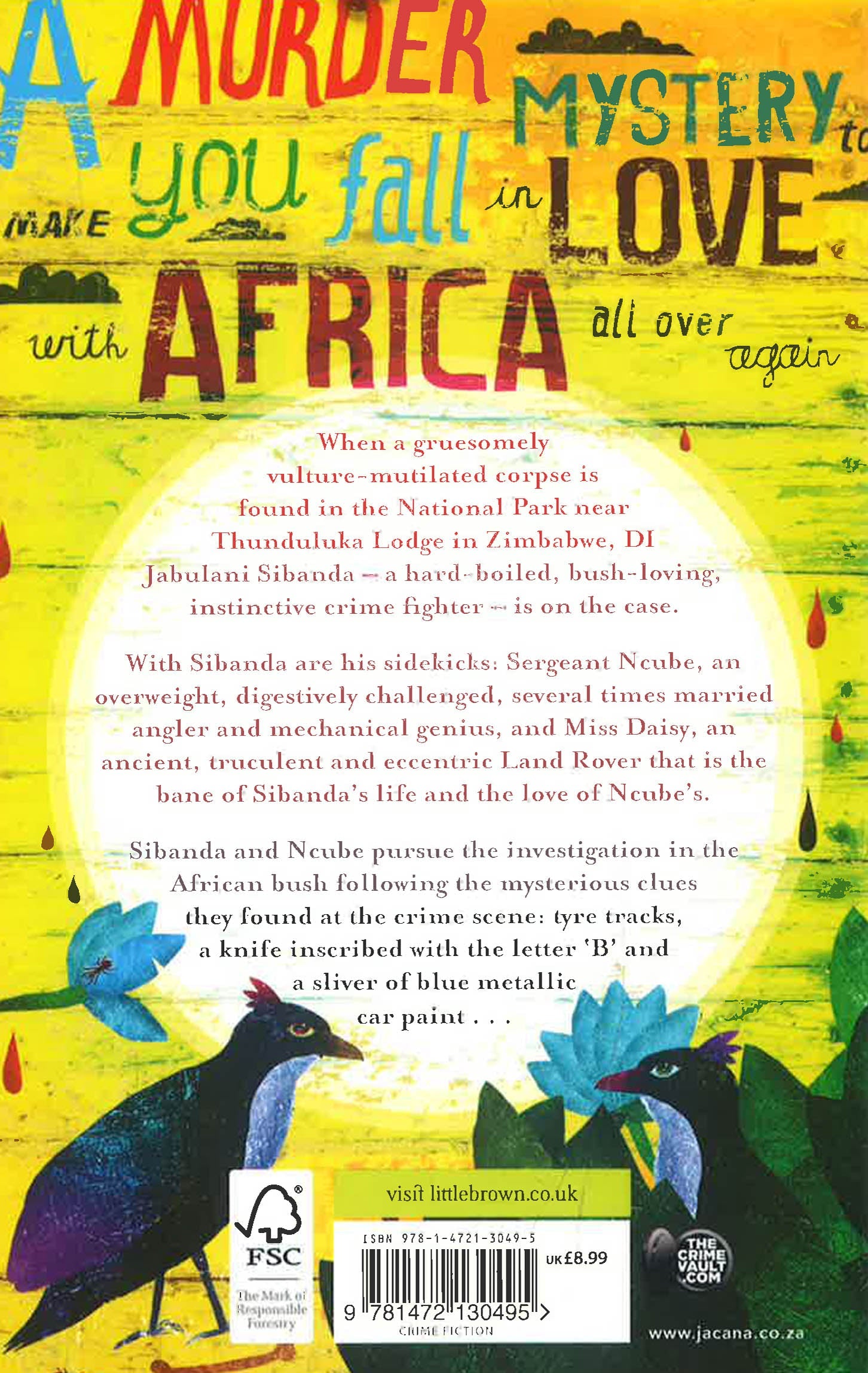 When a gruesomely vulture-mutilated corpse is found in the Park near Thunduluka Lodge, DI Jabulani Sibanda - a hard-boiled, bush-loving, instinctive crime fighter - is on the case. With Sibanda are his sidekicks: Sergeant Ncube, an overweight, digestively challenged, severally married angler and mechanical genius, and Miss Daisy, an ancient, truculent and eccentric Land Rover that is the bane of Sibanda's life and the love of Ncube's.