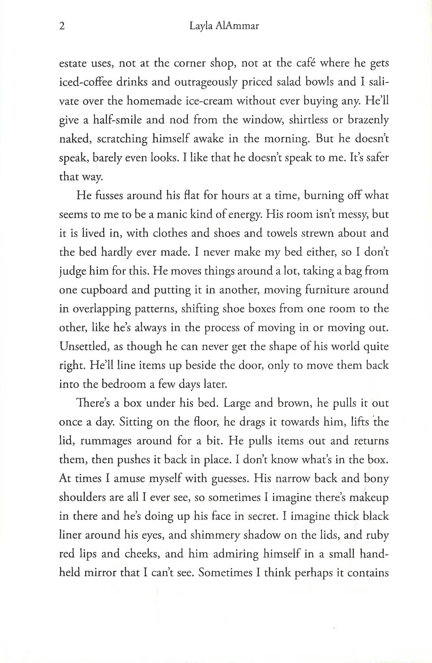 A young woman sits in her apartment, watching the small daily dramas of her neighbors across the way. She is an outsider, a mute voyeur, safe behind her windows, and she sees it all--the sex, the fights, the happy and unhappy families. Journeying from her war-torn Syrian homeland to this unnamed British city has traumatized her into silence, and her only connection to the world is the column she writes for a magazine under the pseudonym "the Voiceless," where she tries to explain the refugee experience without sensationalizing it--or revealing anything about herself.