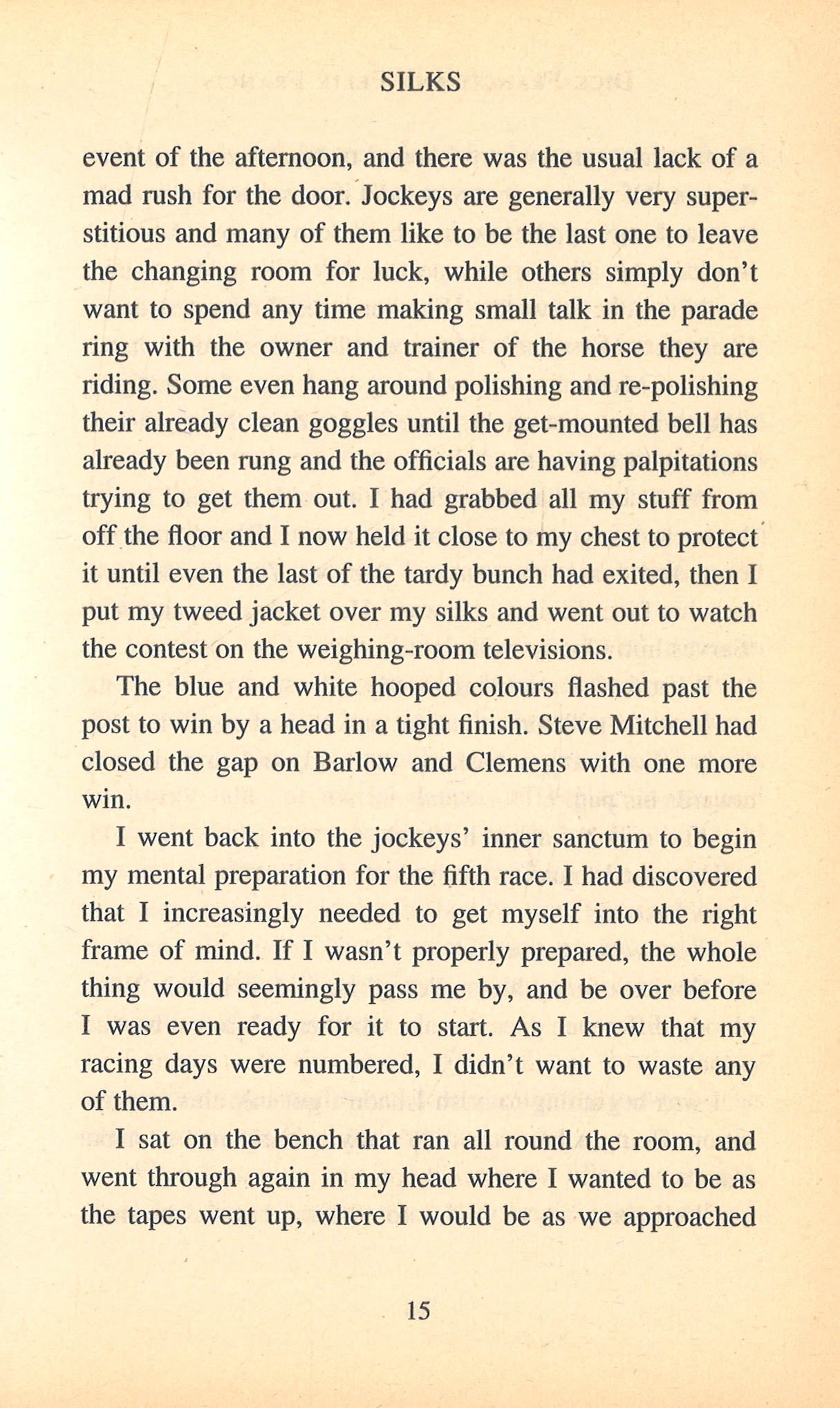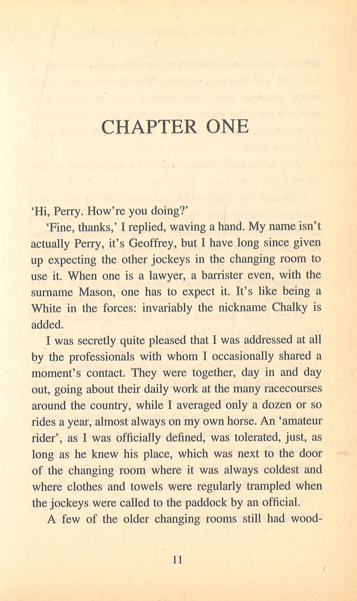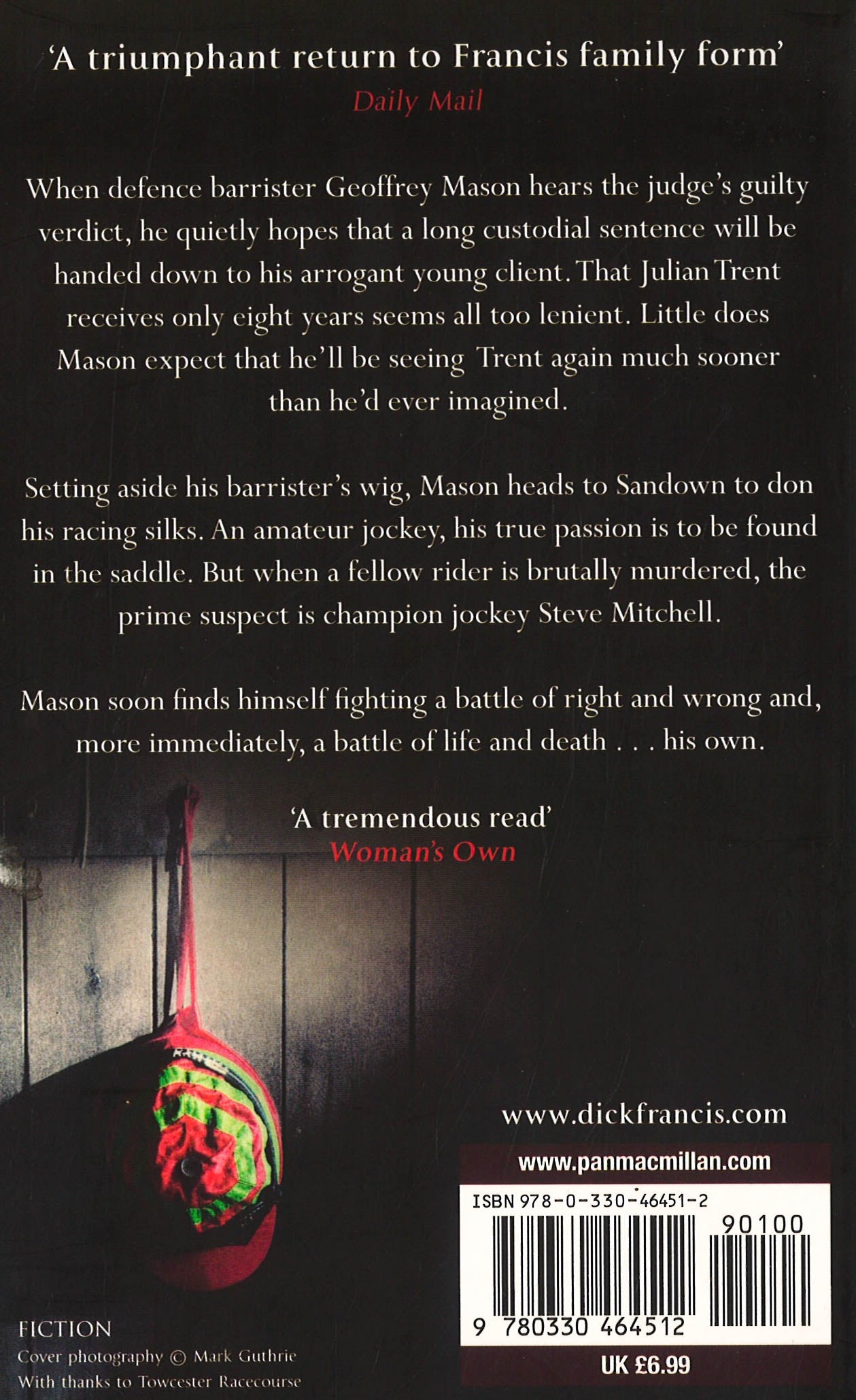 When defence barrister Geoffrey Mason hears the judge's guilty verdict, he quietly hopes that a long custodial sentence will be handed down to his arrogant young client. that Julian Trent receives only eight years seems all too lenient. Little does Mason expect that he'll be seeing Trent again much sooner than he'd ever imagined. Setting aside his barrister's wig, Mason heads to Sandown to don his racing silks. An amateur jockey, his true passion is to be found in the saddle. But when a fellow rider is brutally murdered, the prime suspect is champion jockey Steve Mitchel. Mason soon finds himself fighting a battle of right and wrong and, more immediately, a battle of life and death . . . his own.