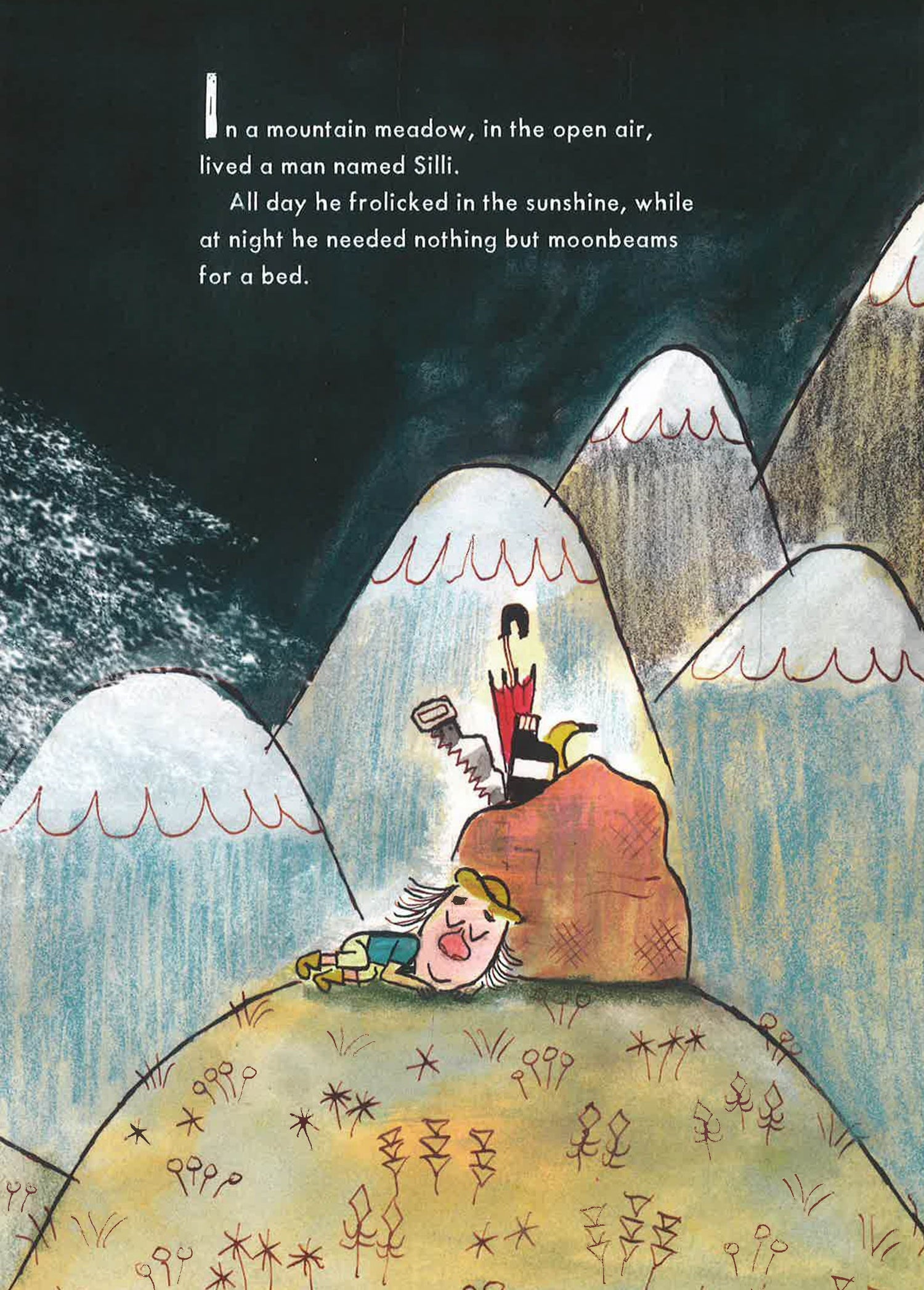 Silli lives in the middle of a meadow, in the open air. One morning, a gust of wind pays a visit--brrrr! What if the wind comes to stay? If only Silli could find some sheep, he'd have wool to knit a sweater to keep him warm. Luckily, he spots five large sheep up on a hill--perfect! It's just too bad they're resistant to herding and their wool is incredibly hard. But when Silli leans against them, they block the wind and keep him warm. . . . Perhaps he can build a shelter made of sheep? And so he resourcefully arranges his sturdy sheep (which are actually sheep-shaped rocks) into a little hut, and is finally warm and dry. This charming story--crafted in the tradition of folkloric characters who are well-meaning, likeable, and also a bit ridiculous--is sure to have a ton of kid appeal