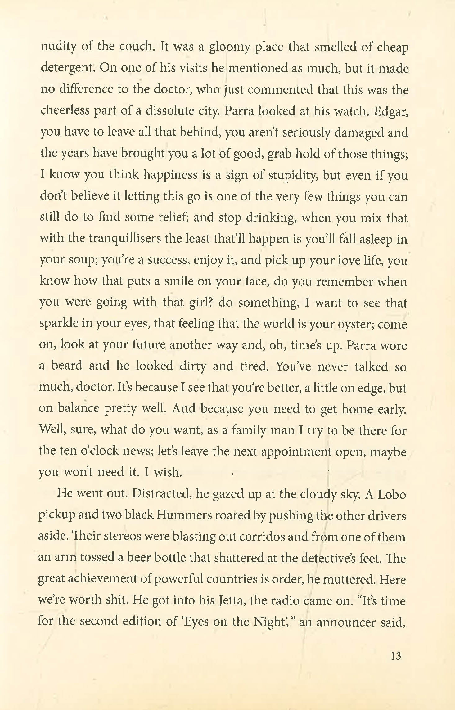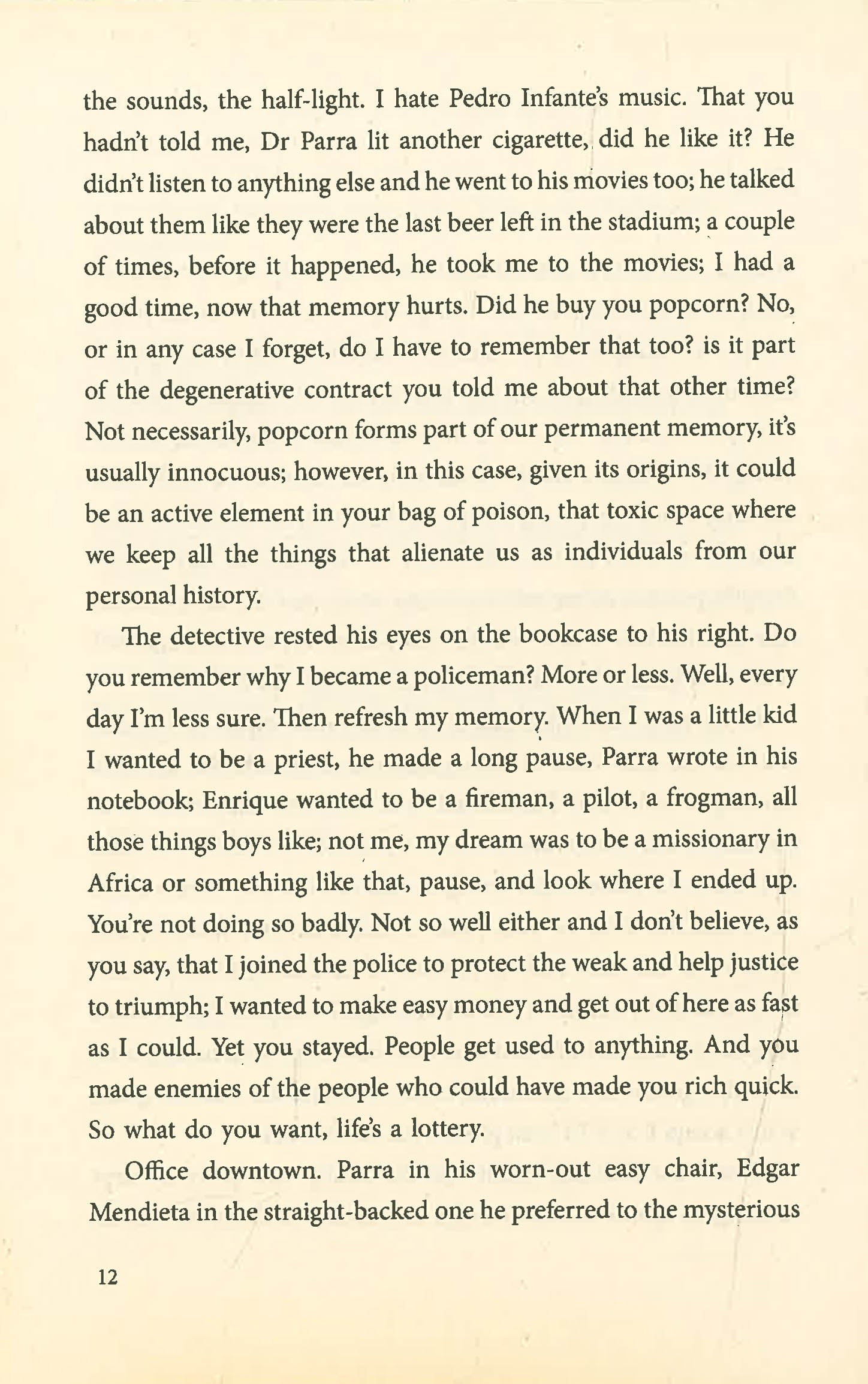 It's just another day at the office for Detective Edgar "Lefty" Mendieta: abandoned by the woman he loves, demoralized by his city's (and his nation's) ubiquitous corruption, and in dire need of some psychotherapy. Against this backdrop, he catches the case of Bruno Canizales, a high-powered lawyer with a double life, who was killed by a single silver bullet.Throwing himself into his work, Mendieta begins to piece together the details of Canizales' life. The son of a former government minister, and the lover of a drug lord's daughter, Canizales it seems had a penchant for cross-dressing and edgy sex.In the sweltering city of Culiacán, Mexico's capital of narco-crime, Mendieta scrambles to follow several leads. His dogged pursuit of the killer takes him from glitzy mansions to drug dens, from down-at-the-heels reporters to glamorous transsexuals. When a second, apparently related murder surfaces, Mendieta discovers that his desire to unearth the truth has become as overpowering as any drug.