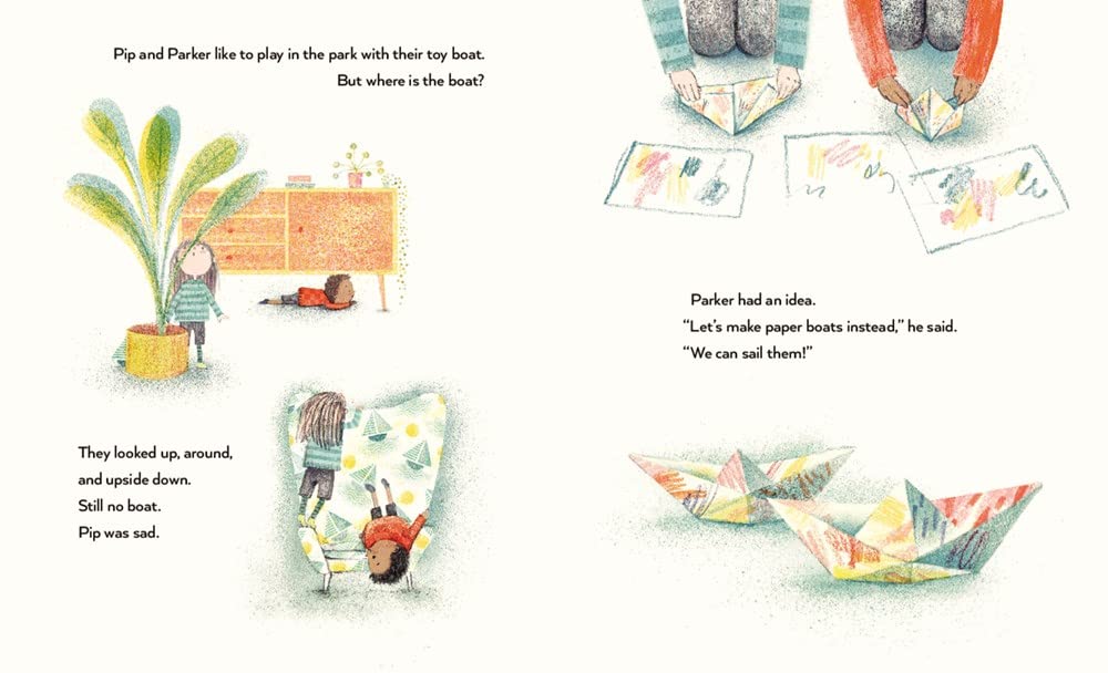 Pip and Parker are best friends who do everything together. If something goes wrong, Parker (who always looks on the bright side) helps Pip see the silver lining. When the clouds roll in, Pip sees a day spoiled by rain, but Parker sees a chance to play a fun cloud guessing game!