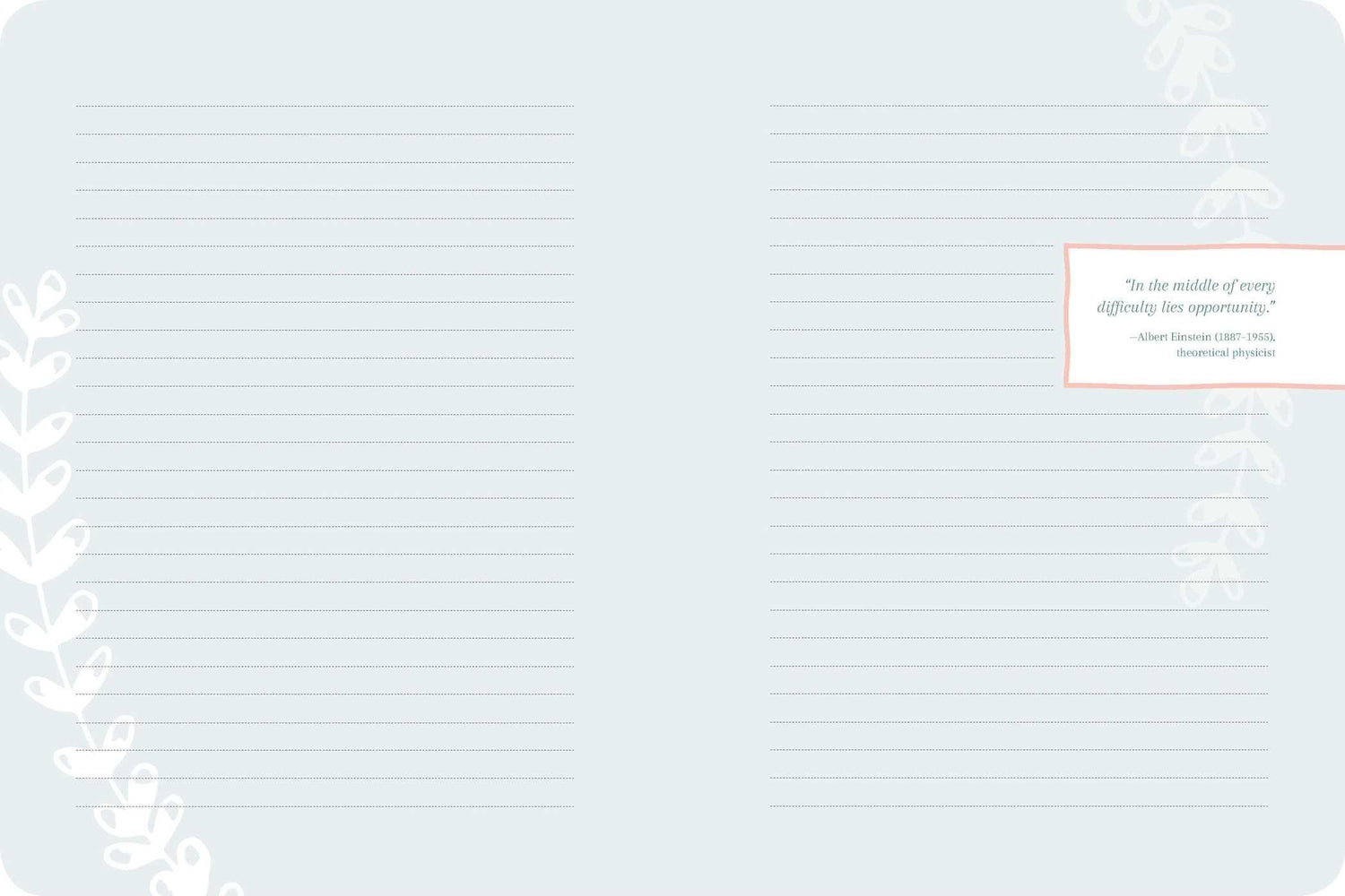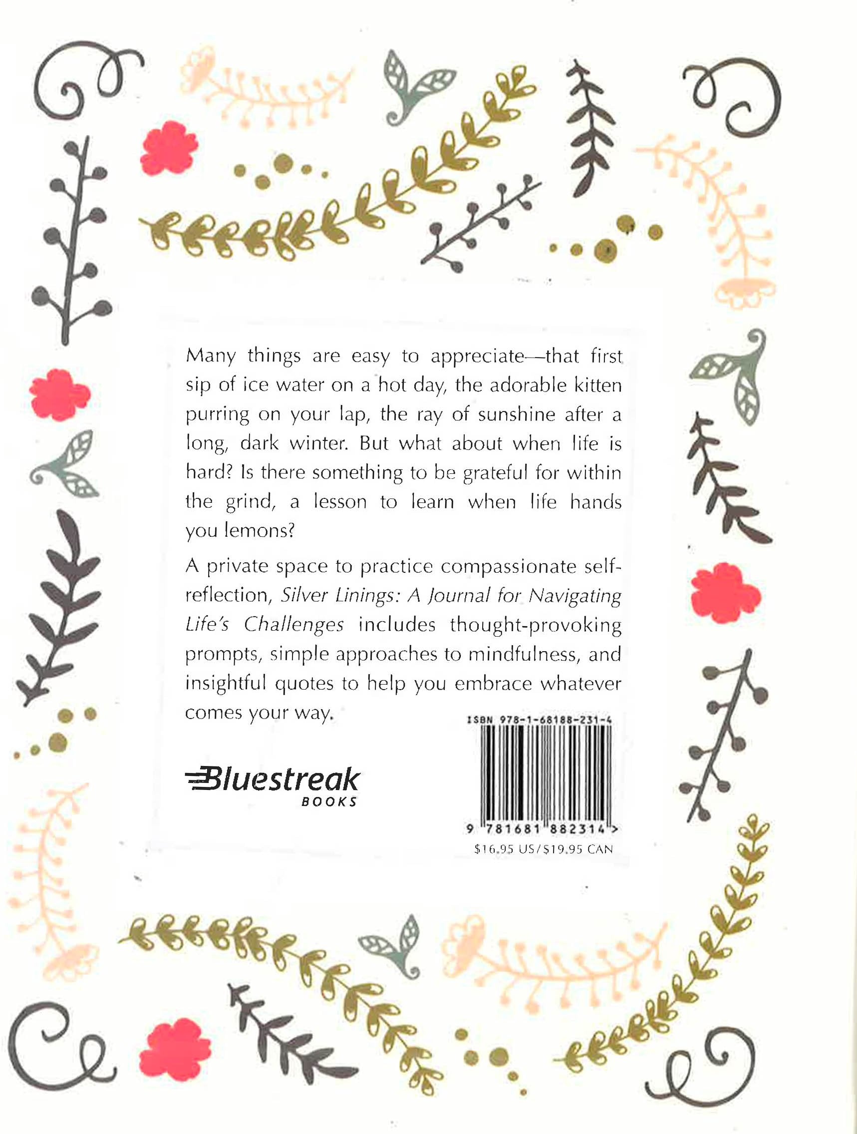 There are many things that are easy to be grateful for--a beautiful wine, the adorable kitten purring on your lap, the ray of sunshine after a long dark winter. But what about when life is hard? Is there something to be grateful for within the grind, a lesson to learn when life hands you lemons? A twist on the classic gratitude journal, this journal focuses on the positive side of every experience. Included are prompts to help you see the silver lining in life's challenging moments and quotes that get you through bad days. Using a combination of lined pages, bullets, and blank pages, with quotations matched with related prompts, this beautifully designed journal will help readers find the bright sides of the worst situations.