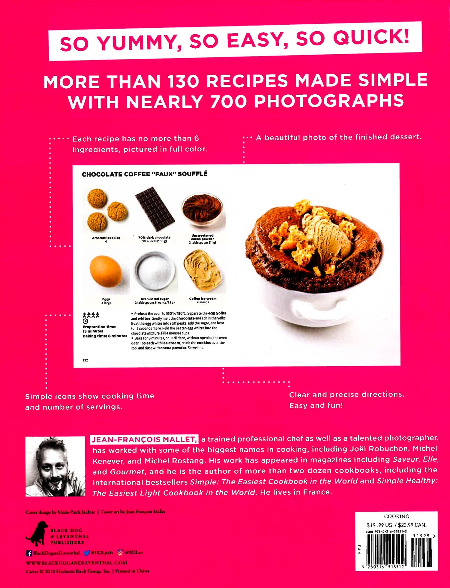 International bestselling author and Jean-Françs Mallet combines interesting flavors and all-natural ingredients to create the easiest baking recipes out there. Within minutes you can create: Easy Puff Pastry DoughBlueberry TarletsCaramel Rice PuddingRaspberry Spring RollsChocolate TrufflesFast and Easy ProfiterolesSpeculaas Ice CreamWild Strawberry TiramisuChocolate-Hazelnut Mousse