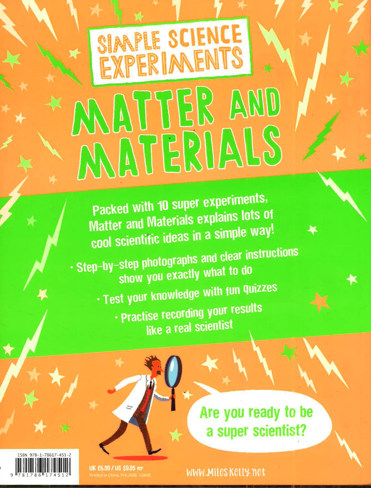Packed with 10 super experiments, Matter and Material explains lots of cool scientific ideas in a simple way!Step-by-step photographs and clear instructions show you exactly what to do. Test your knowledge with fun quizzes. Practise recording your results like a real scientist!