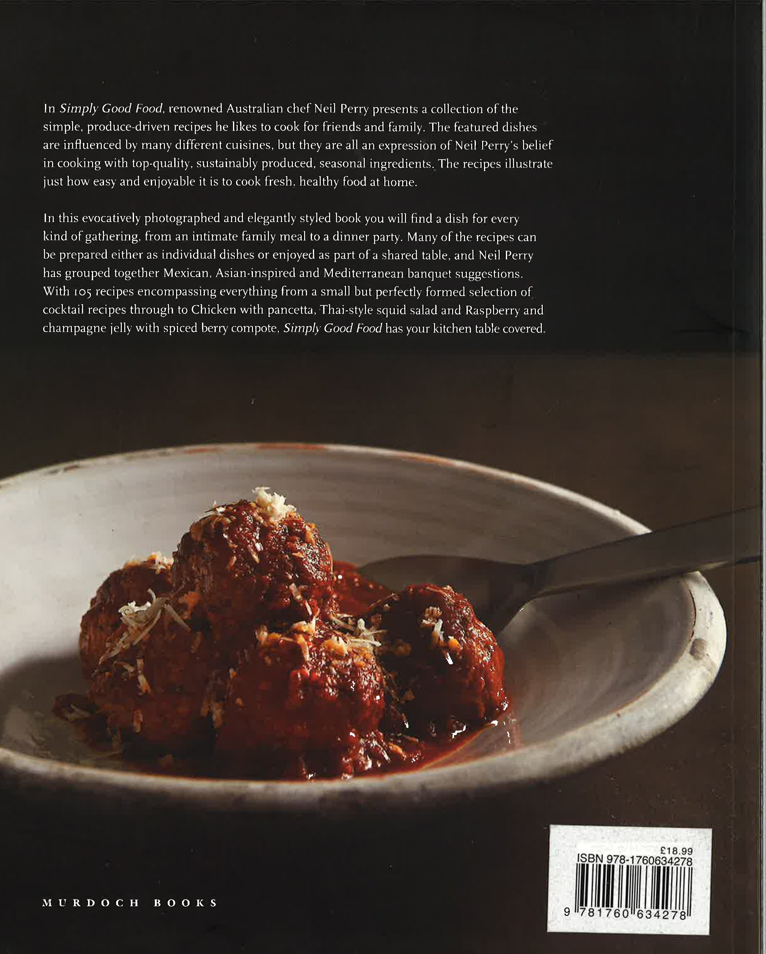 In Simply Good Food, renowned Australian chef Neil Perry presents a collection of the simple, produce-driven recipes he likes to cook for friends and family. The featured dishes are influenced by many different cuisines, but they are all an expression of Neil Perry's belief in cooking with top-quality, sustainably produced, seasonal ingredients. The recipes illustrate just how easy and enjoyable it is to cook fresh, healthy food at home.In this evocatively photographed and elegantly styled book you will find a dish for any kind of gathering, from an intimate family meal to a dinner party. Many of the recipes can be prepared either as individual dishes or enjoyed as part of a shared table, and Neil Perry has grouped together Mexican, Asian-inspired and Mediterranean banquet suggestions. With 105 recipes encompassing everything from a small but perfectly formed selection of cocktail recipes through to chicken with pancetta, Thai-style squid salad and raspberry and champagne jelly with spiced berry compote, Simply Good Food has your kitchen table covered.