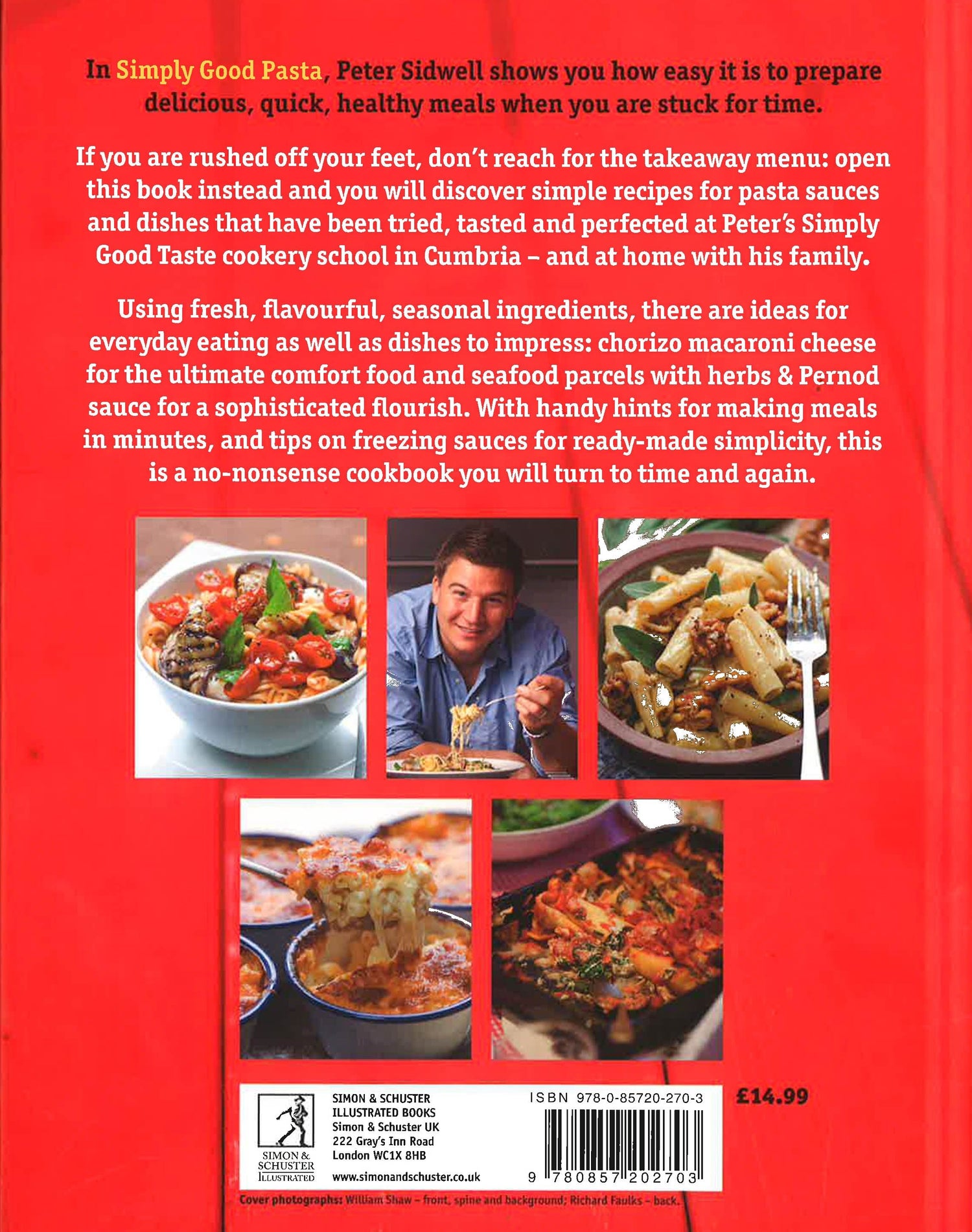 This is a no nonsense cookbook that will help you to create great-tasting fresh pasta dishes. Nowadays, pasta is such a familiar cooking ingredient that it has almost become our own. With this book, Peter Sidwell shows you how easy it is to prepare fantastic, quick pasta sauces to use when you are stuck for time. If you are late home from work, or rushed off your feet with dogs to walk and children to feed, don't reach for the takeaway menu! Simply Good Pastawill solve your dinner dilemmas. The simple recipes are great for busy people everywhere. Frompesto, preserved peppers and slow-roasted tomatoes to your own ricotta and warm dressings for a lighter pasta dish, there are ideas for everyday eating as well as dishes to impress your guests.
